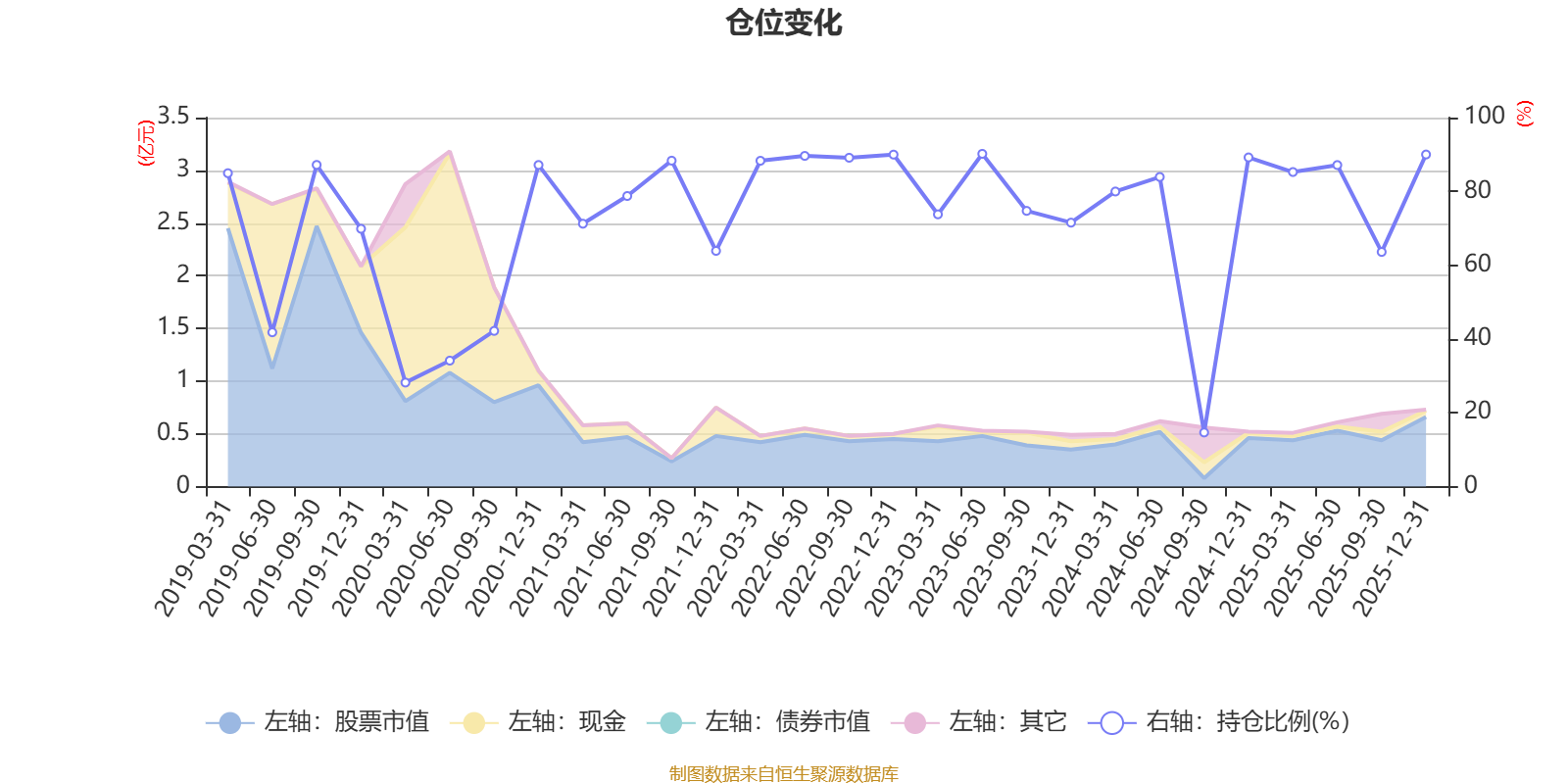 据定期报告数据统计,近三年平均股票仓位为75.33%,同类平均为72.57%。2023年上半年末基金达到90.18%的最高仓位,2024年三季度末最低,为14.66%。