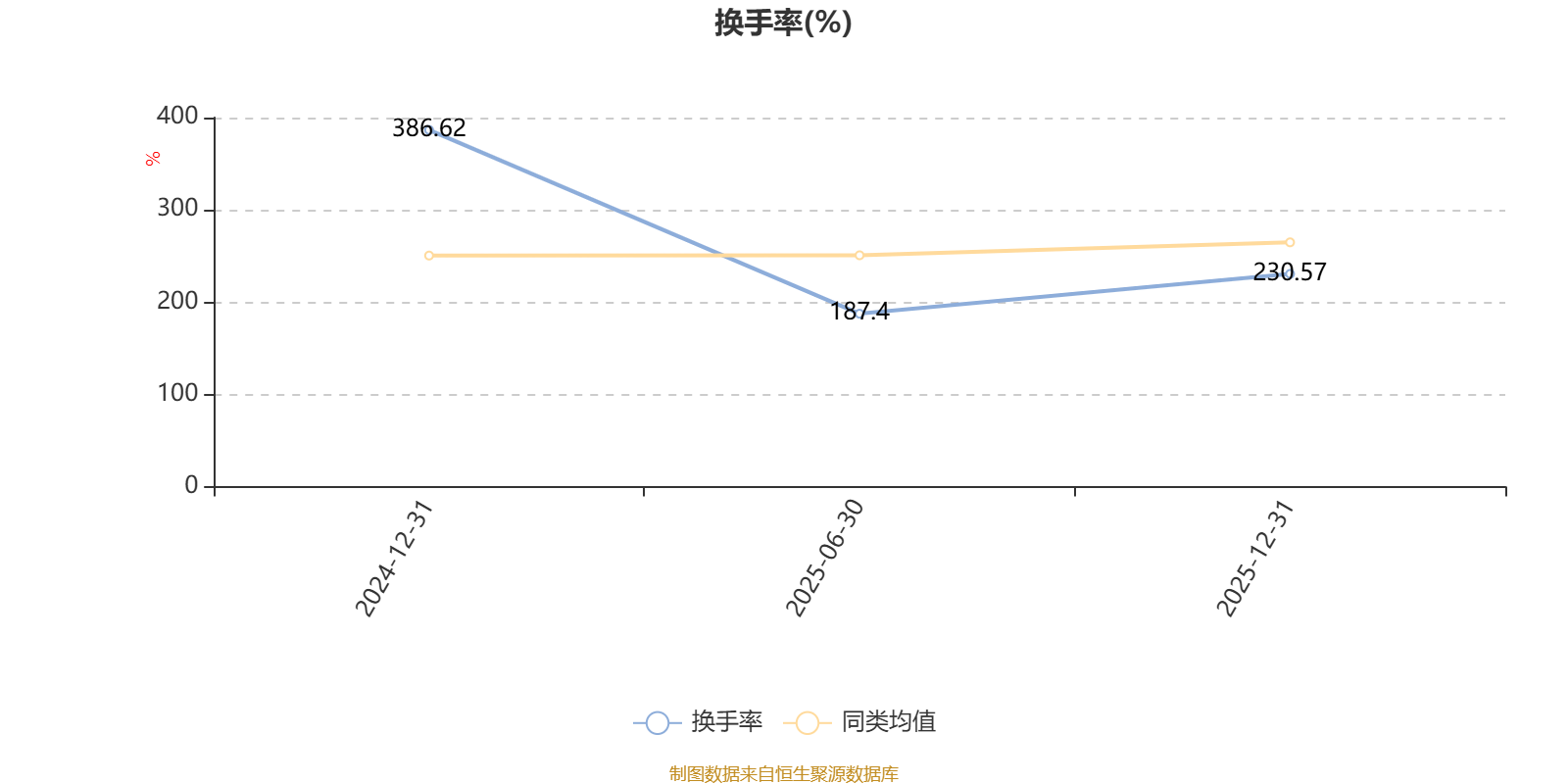 截至2025年12月31日,基金最近一年换手率约414.96%,持续1年低于同类均值。