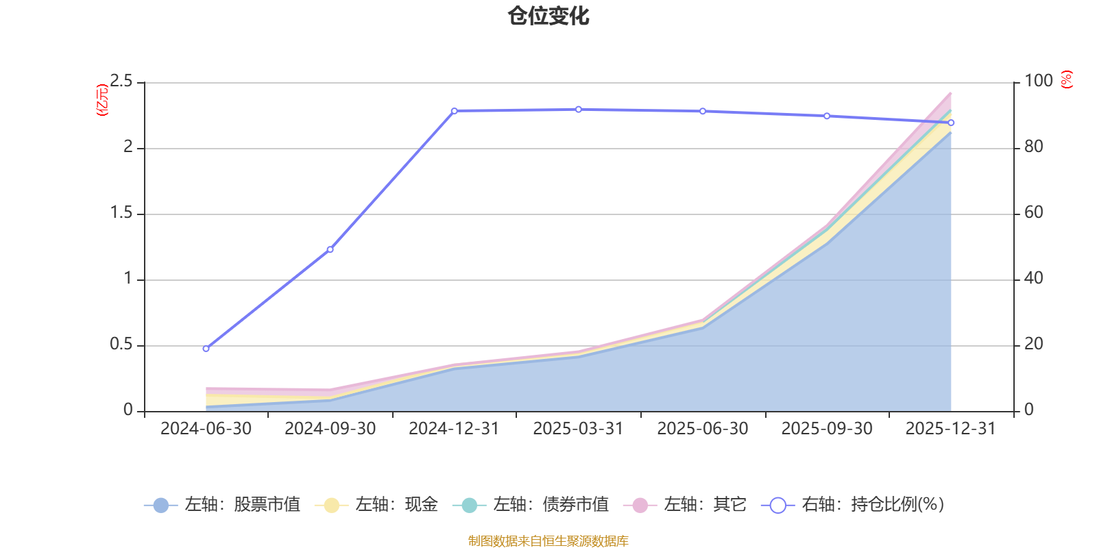 据定期报告数据统计,成立以来平均股票仓位为74.24%,同类平均为88.36%。2025年一季度末基金达到91.74%的最高仓位,2024年上半年末最低,为18.97%。