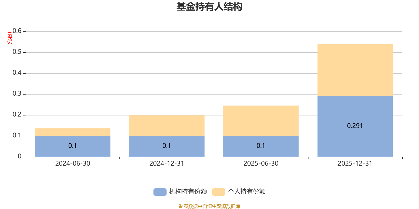 截至2025年12月31日,基金持有人共计3003户,合计持有5397.08万份。其中管理人员工持有1.79万份,占比0.03%,机构持有份额占比53.84%,个人投资者占比46.16%。