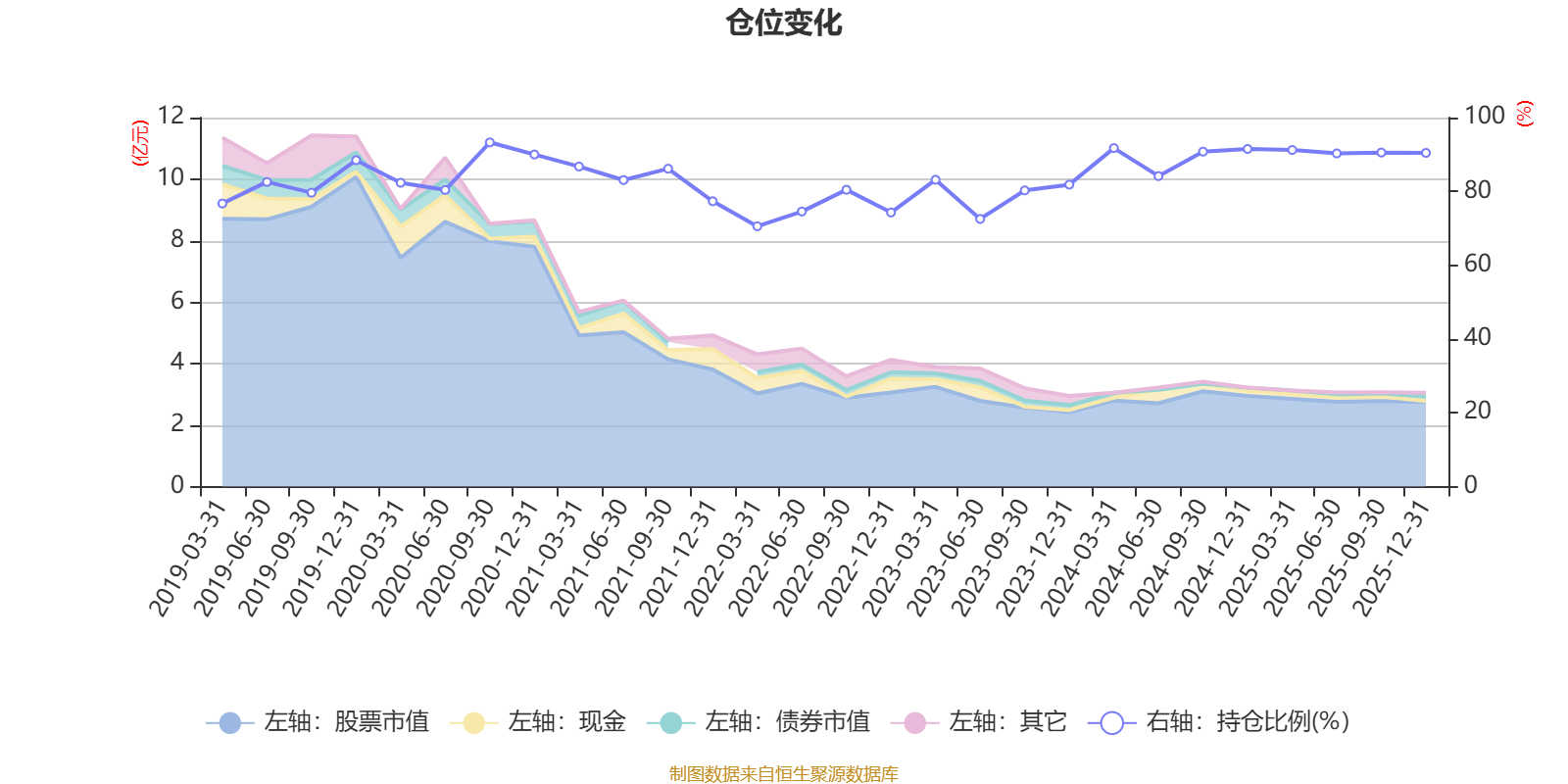 据定期报告数据统计,近三年平均股票仓位为86.54%,同类平均为88.27%。2020年三季度末基金达到93.28%的最高仓位,2022年一季度末最低,为70.55%。