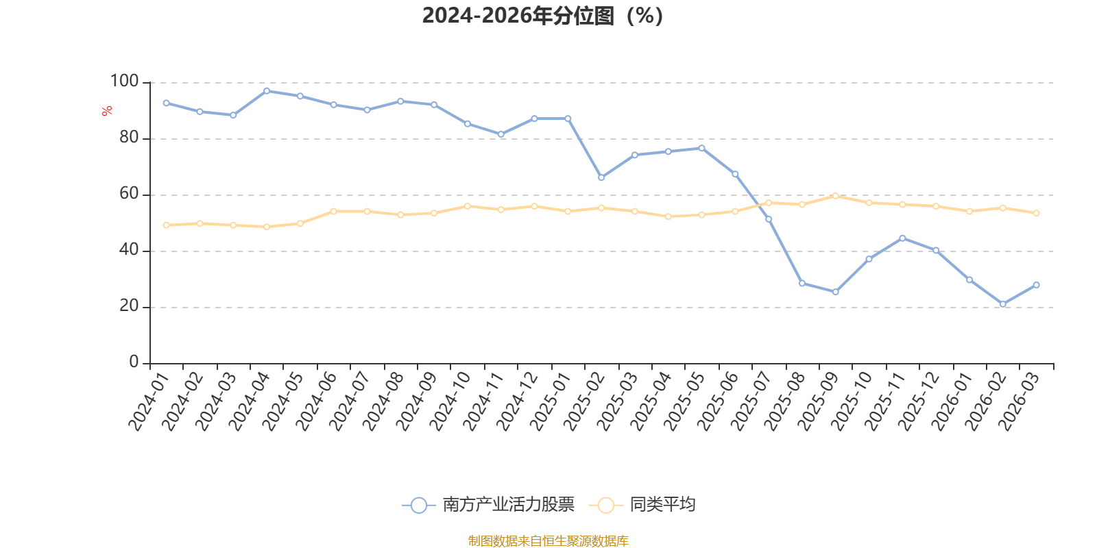 通过所选区间该基金净值增长率分位图,可以观察该基金与同类基金业绩比较情况。图为坐标原点到区间内某时点的净值增长率在同类基金中的分位数。