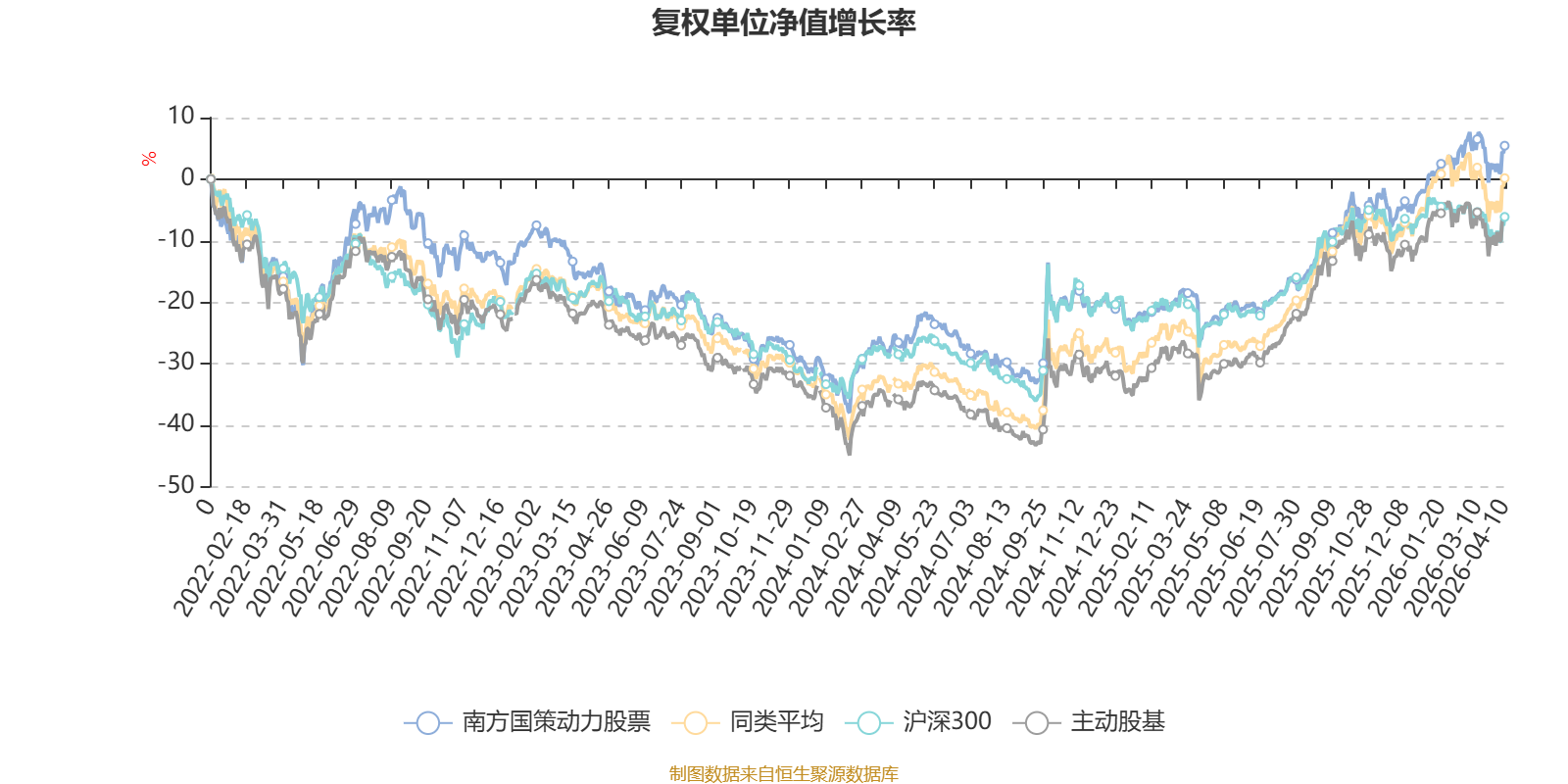 截至4月10日,南方国策动力股票近三个月复权单位净值增长率为4.17%,位于同类可比基金35/167;近半年复权单位净值增长率为9.96%,位于同类可比基金49/167;近一年复权单位净值增长率为39.55%,位于同类可比基金87/165;近三年复权单位净值增长率为23.02%,位于同类可比基金77/157。