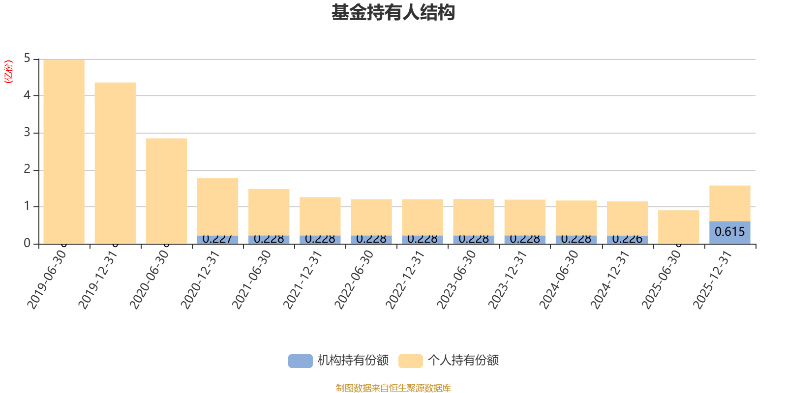 截至2025年12月31日,基金持有人共计8620户,合计持有1.58亿份。其中管理人员工持有44.06万份,占比0.28%,机构持有份额占比38.99%,个人投资者占比61.01%。