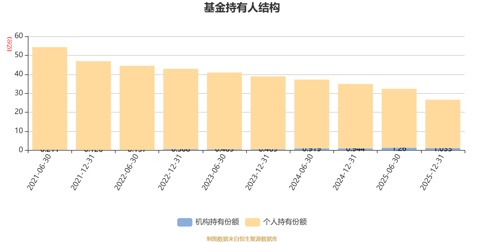 截至2025年12月31日,基金持有人共计3.62万户,合计持有26.61亿份。其中管理人员工持有341.99万份,占比0.13%,机构持有份额占比3.88%,个人投资者占比96.12%。
