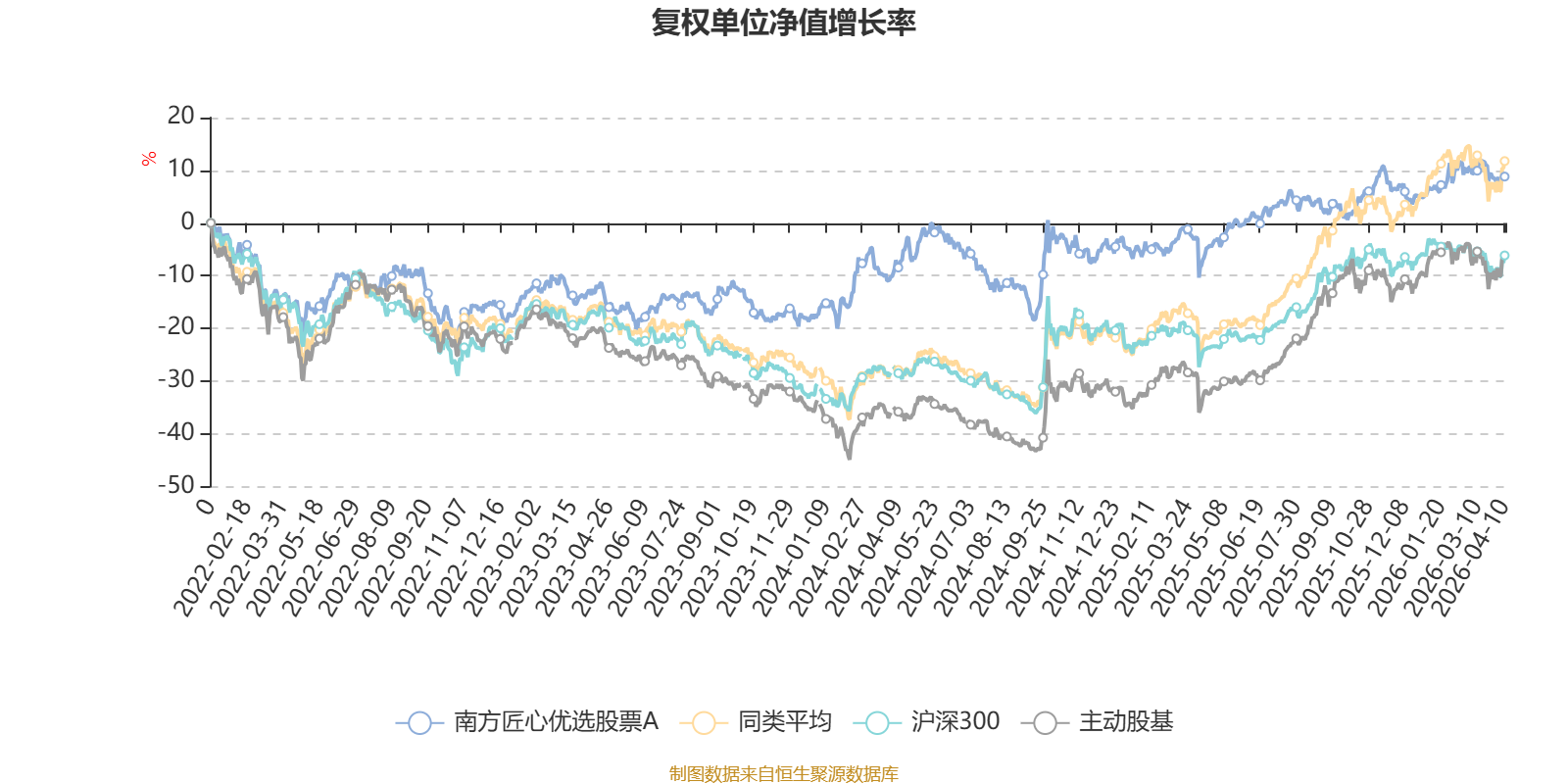 截至4月10日,南方匠心优选股票A近三个月复权单位净值增长率为2.24%,位于同类可比基金27/58;近半年复权单位净值增长率为6.35%,位于同类可比基金28/58;近一年复权单位净值增长率为17.01%,位于同类可比基金47/57;近三年复权单位净值增长率为25.43%,位于同类可比基金35/57。