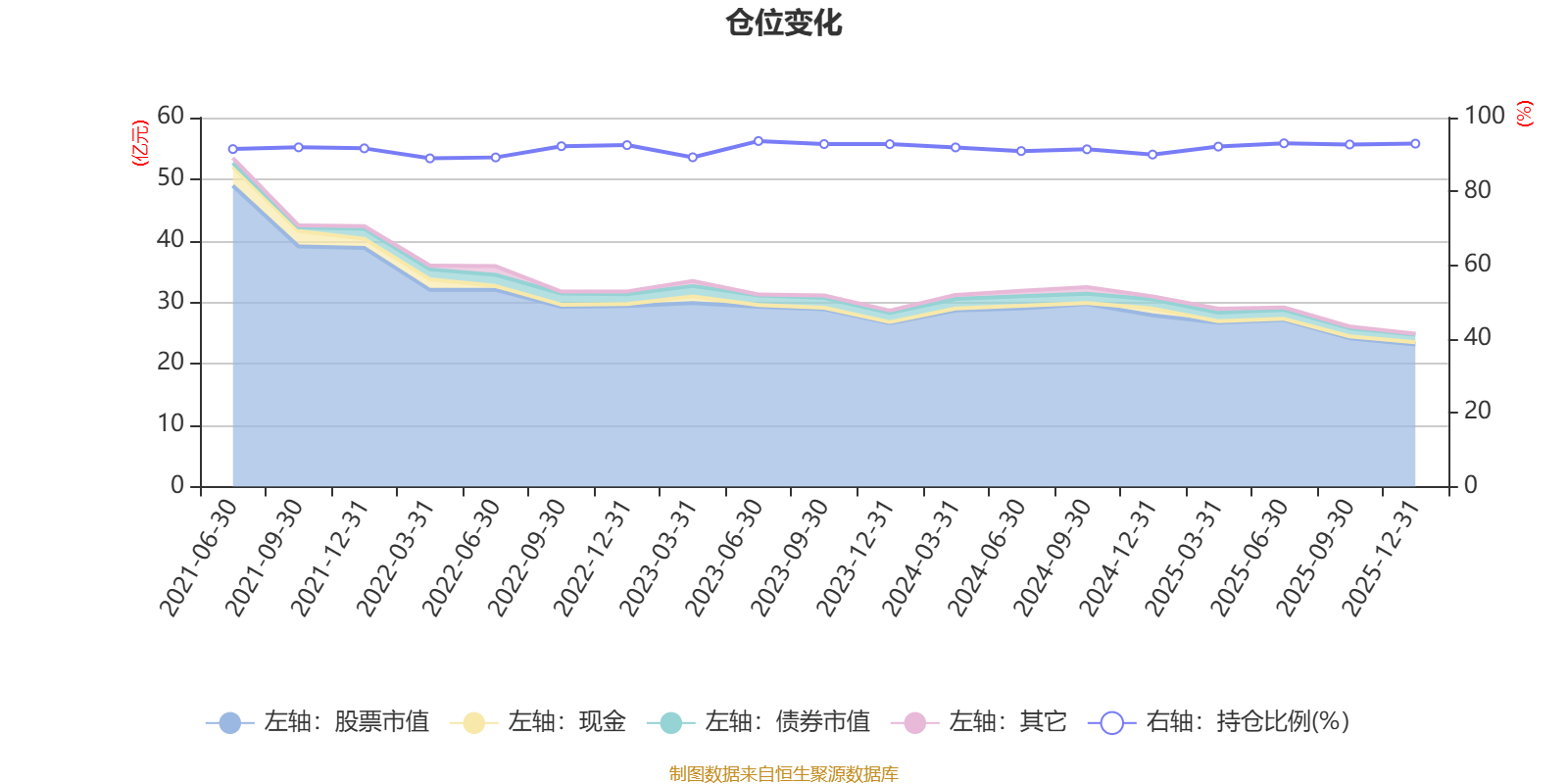 据定期报告数据统计,近三年平均股票仓位为91.97%,同类平均为88.64%。2023年上半年末基金达到93.65%的最高仓位,2022年一季度末最低,为88.96%。
