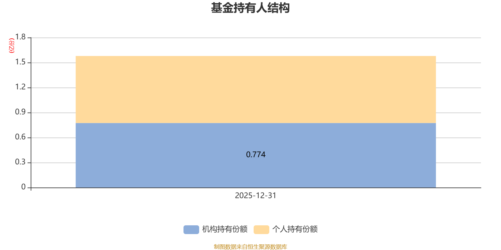 截至2025年12月31日,基金持有人共计805户,合计持有1.58亿份。其中管理人员工持有0份,机构持有份额占比49.06%,个人投资者占比50.94%。