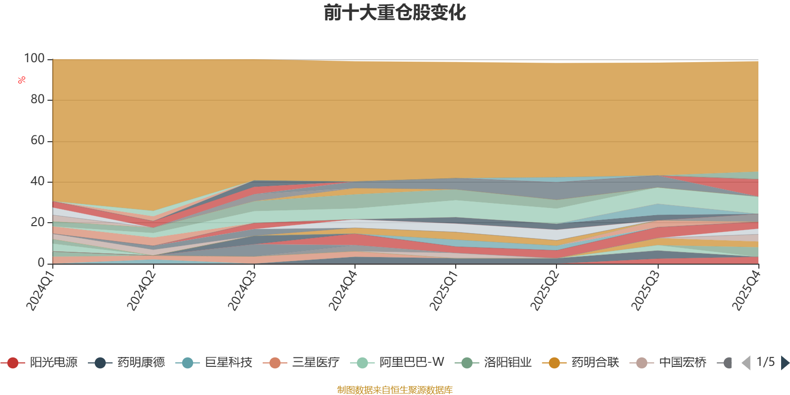 截至2025年末,基金十大重仓股分别是中际旭创、腾讯控股、洛阳钼业、中国平安、中国人寿、中国宏桥、宁德时代、阳光电源、药明合联、中钨高新。