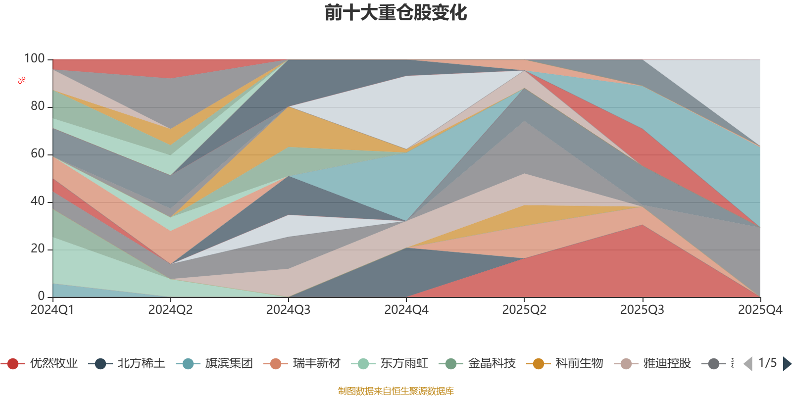 该基金持股集中度较高。截至2025年末,基金重仓股分别是北部湾港、张裕A、新宙邦、振华股份。