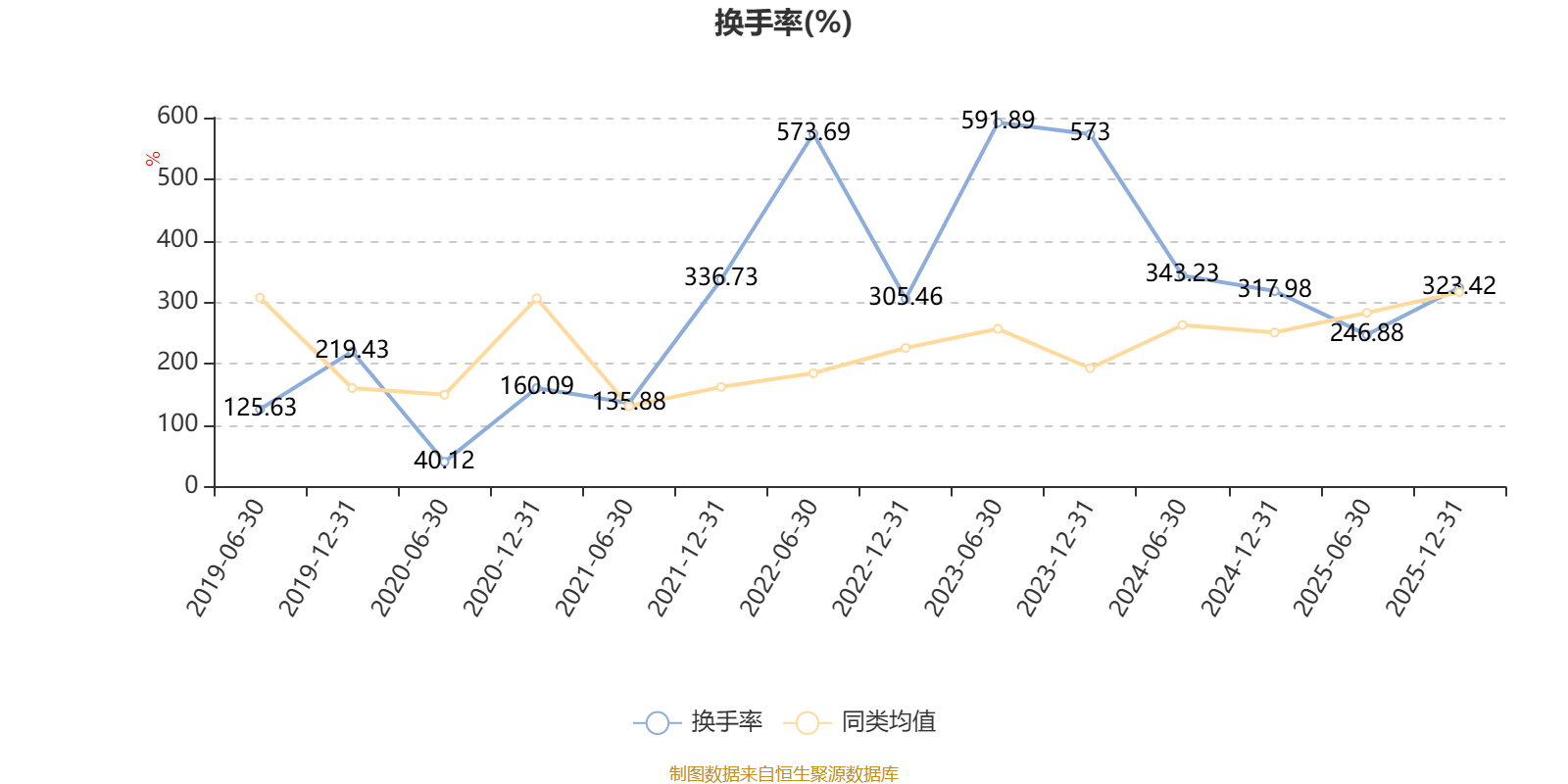 截至2025年12月31日,基金最近一年换手率约613.93%。