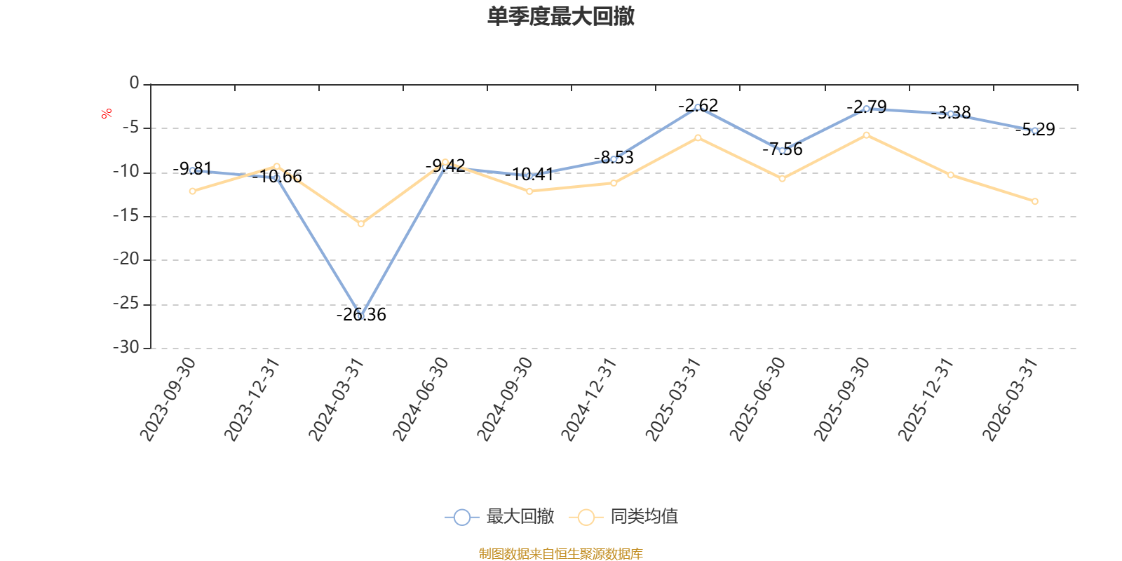 截至4月7日,基金近三年最大回撤为35.13%,同类可比基金排名211/394。单季度最大回撤出现在2024年一季度,为26.36%。