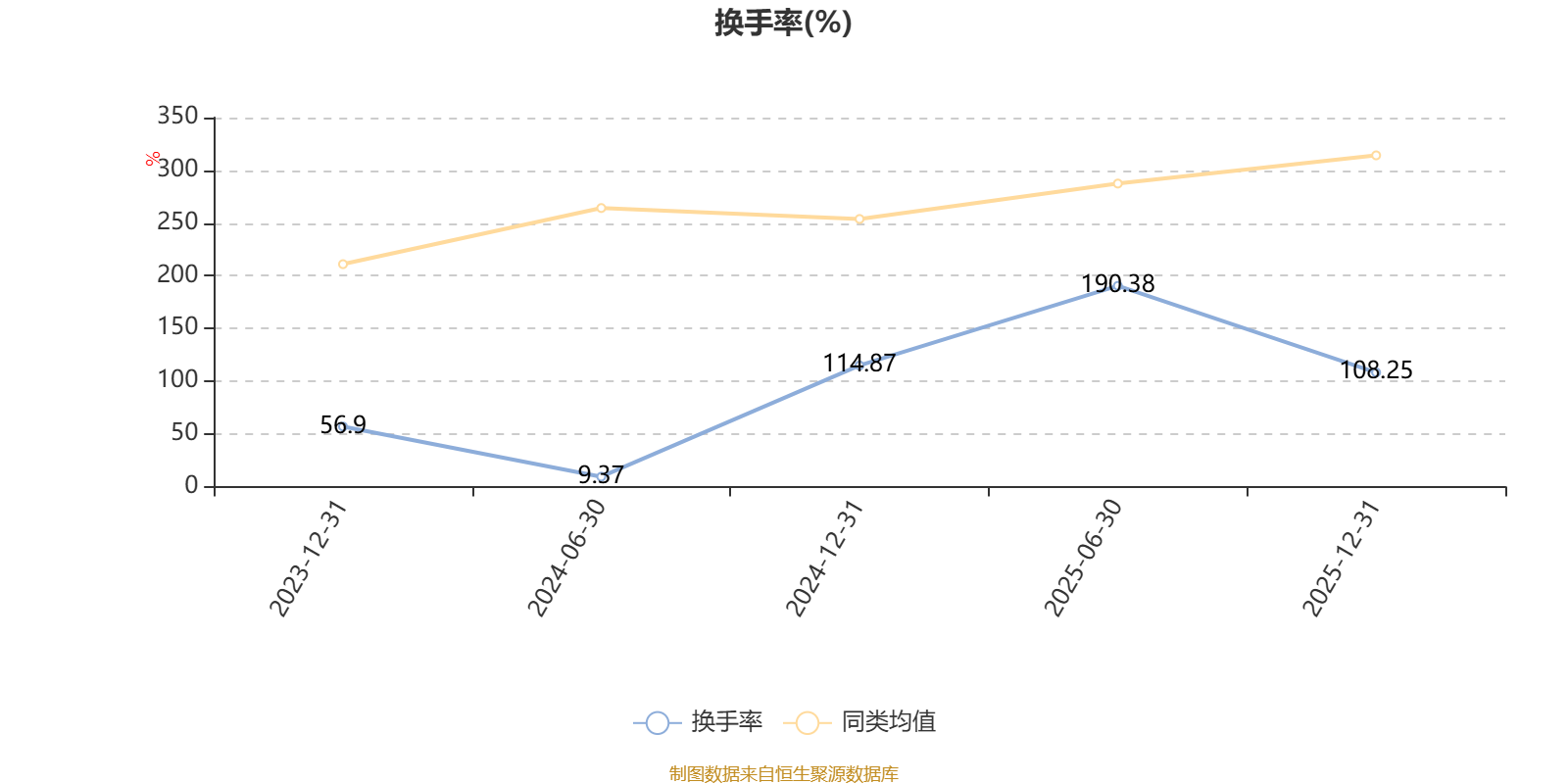 截至2025年12月31日,基金最近一年换手率约287.81%,持续低于同类均值。