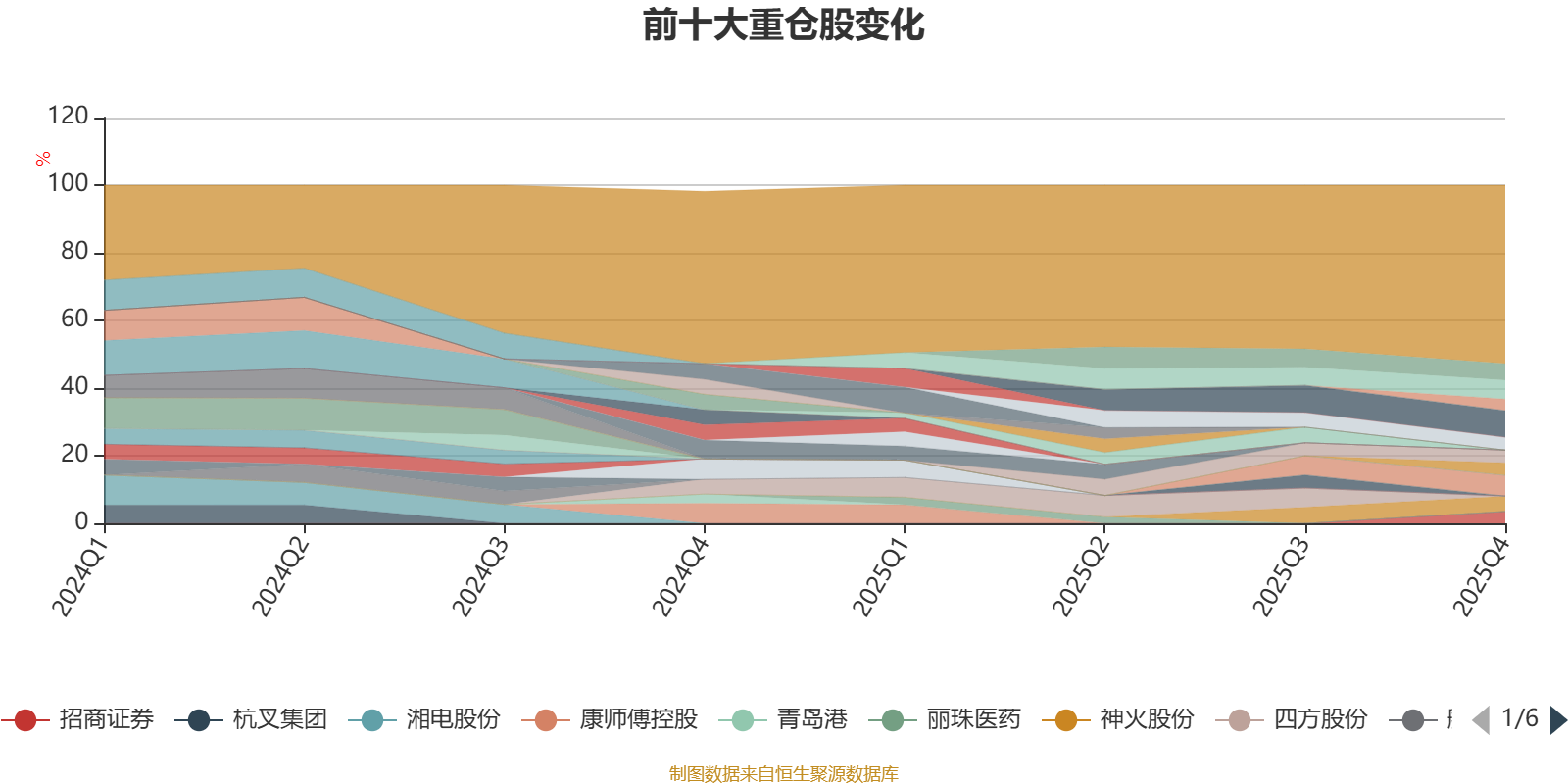 截至2025年末,基金十大重仓股分别是新奥能源、建滔集团、海尔智家、百胜中国、神火股份、贵州茅台、中国联通、国电南瑞、招商证券、信达证券。