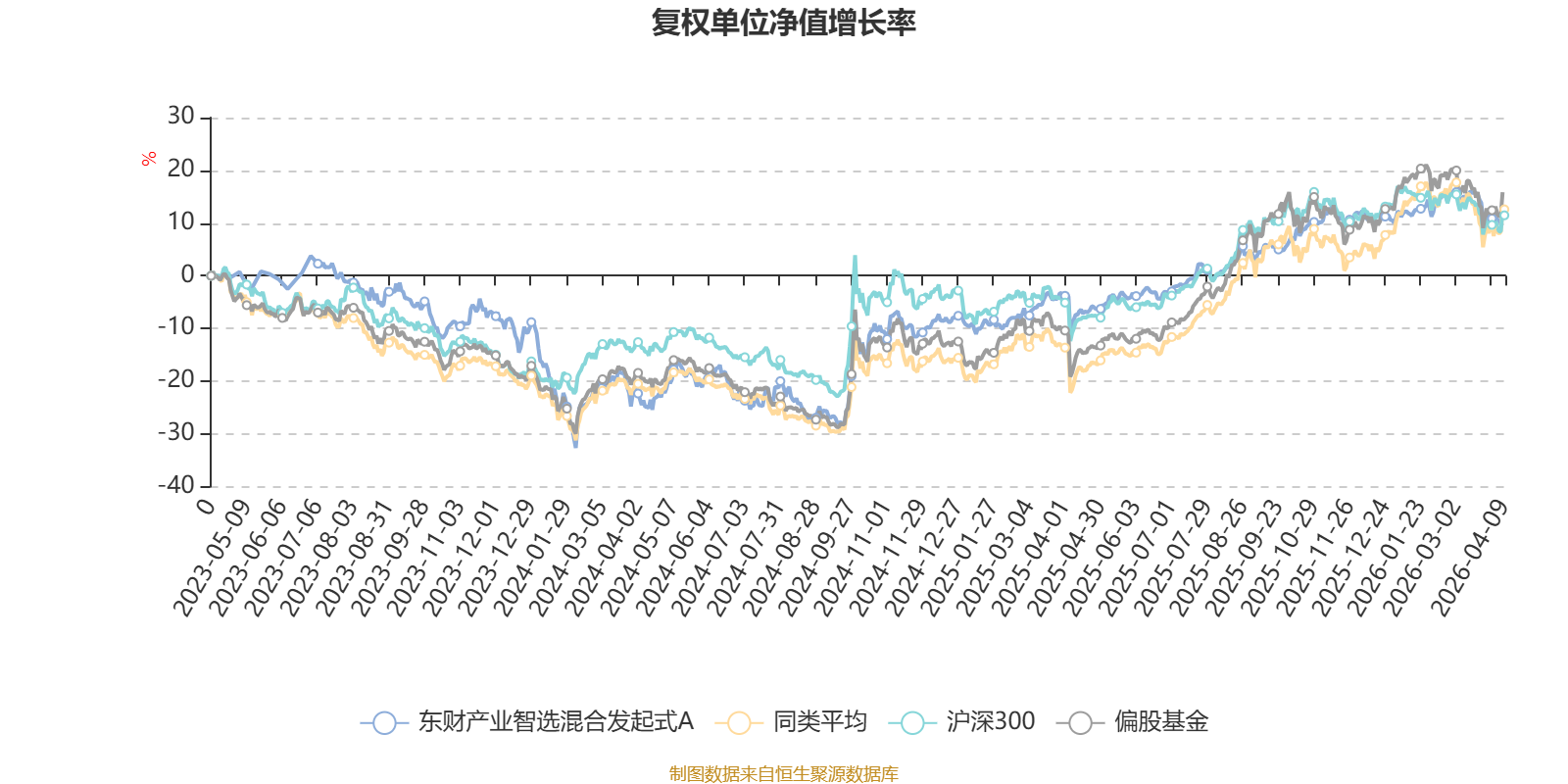 截至4月7日,东财产业智选混合发起式A近三个月复权单位净值增长率为-1.81%,位于同类可比基金373/689;近半年复权单位净值增长率为3.90%,位于同类可比基金283/689;近一年复权单位净值增长率为23.16%,位于同类可比基金488/685;近三年复权单位净值增长率为10.02%,位于同类可比基金222/417。