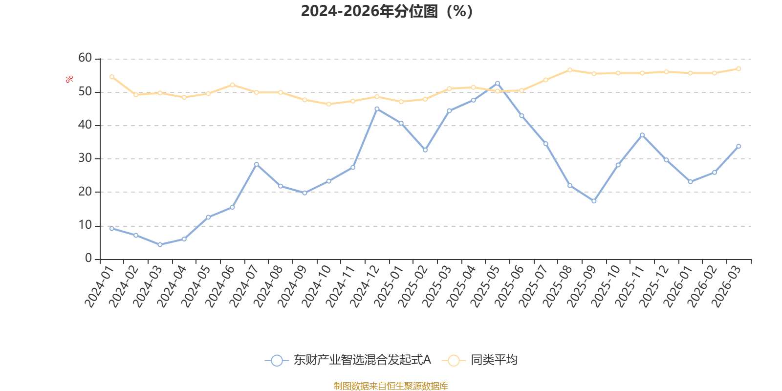通过所选区间该基金净值增长率分位图,可以观察该基金与同类基金业绩比较情况。图为坐标原点到区间内某时点的净值增长率在同类基金中的分位数。