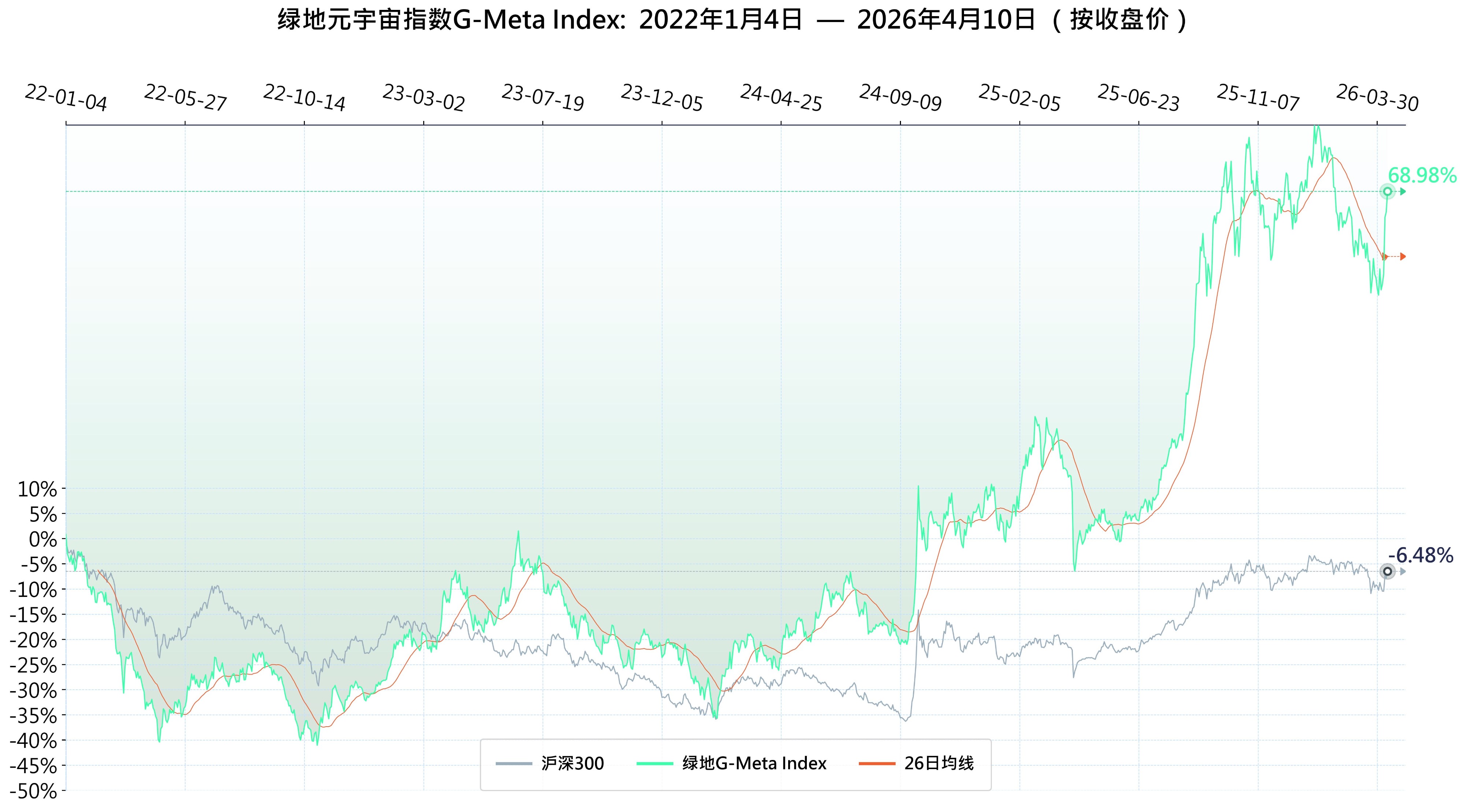 绿地元宇宙指数G-Meta Index由绿地数字经济产业研究院与复旦大学国际金融学院、申万宏源研究所、上海金融信息行业协会联合编制。