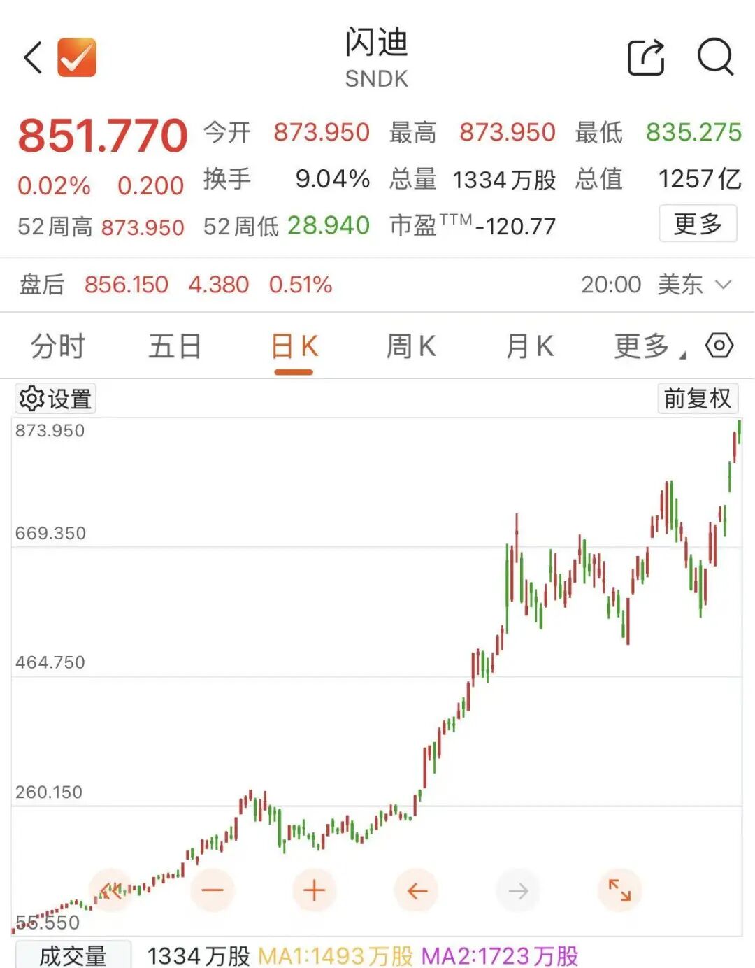 多家海外机构看好闪迪股价。瑞穗将闪迪目标价从710美元上调至1000美元,而伯恩斯坦日前将闪迪目标价从每股1000美元上调至1250美元,并维持对该股“跑赢大盘”的评级。