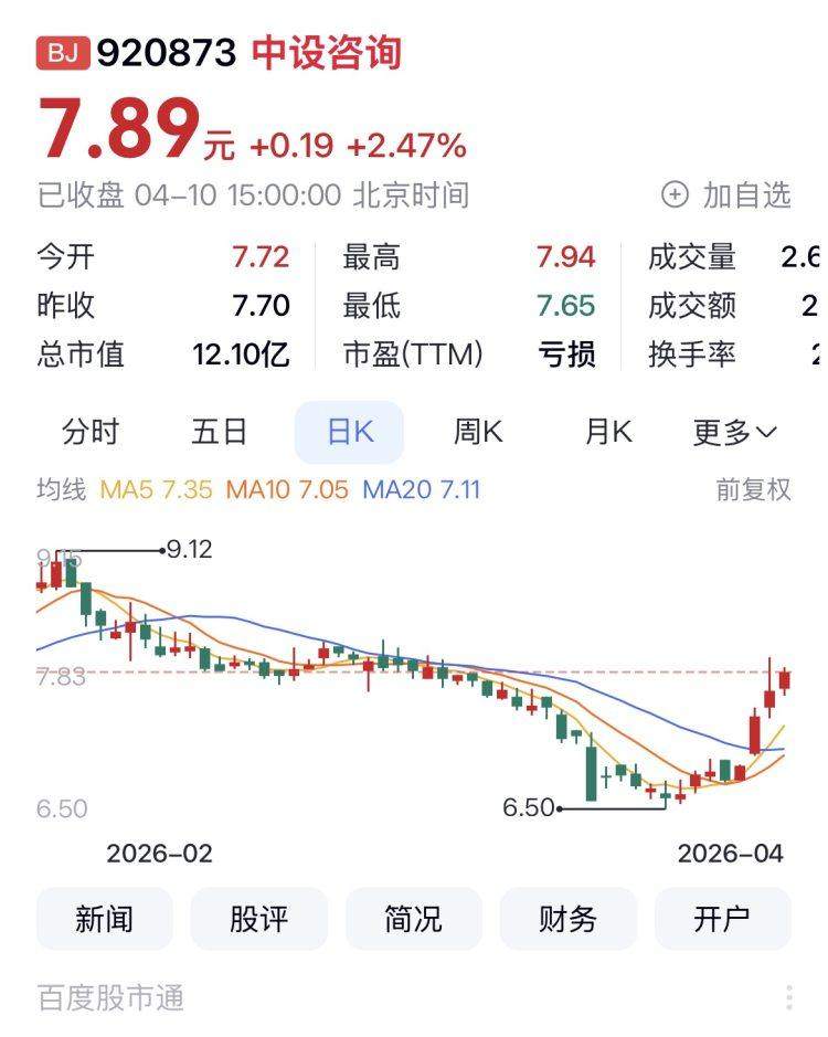 中设咨询报收7.89元,日涨幅2.47%,换手率2.20%,周涨幅16.20%,今年以来涨幅1.94%。