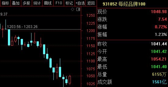超六成每经品牌100指数成分股本周上涨随着中东局势短线出现缓和迹象,市场担忧情绪缓和,外围市场普遍回暖,本周国内A股市场也迎来强势反弹。截至4月10日收盘,上证指数周涨2.74%,以3986.22点报收;深证成指周涨7.16%,以14309.47点报收;创业板指、科创50指数周涨幅也分别达到9.5%和8.62%;每经品牌100指数走势相对平稳,周涨幅为2.24%,以1048.98点报收。