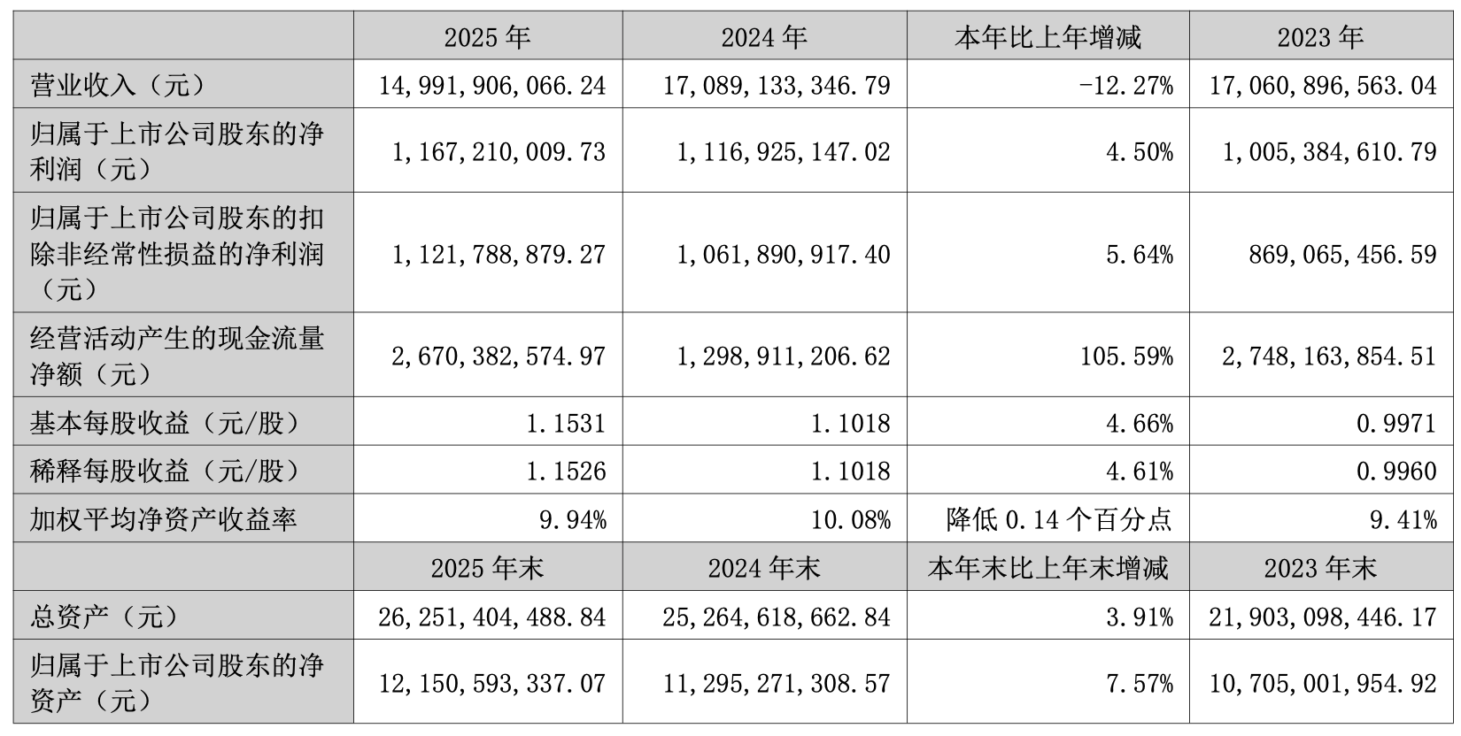 报告期内,许继电气基本每股收益为1.1531元,加权平均净资产收益率为9.94%。公司2025年度分配预案为:拟向全体股东每10股派现2.21元(含税)。
