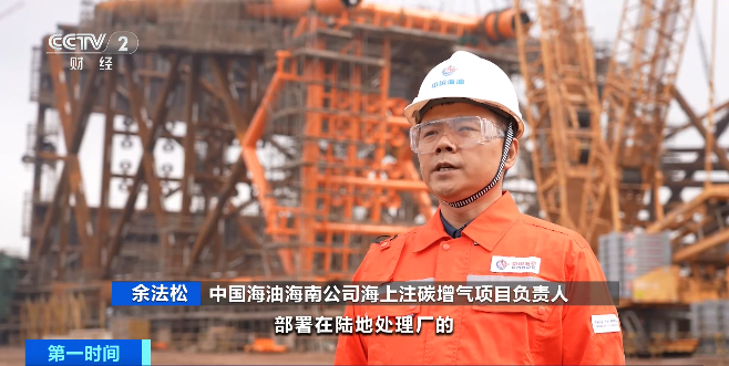 中国海油海南公司海上注碳增气项目负责人余法松:项目全面投产后,预计每年最多可向地层注入约120万吨二氧化碳,对提升海洋能源和资源开发能力、助力国家“双碳”目标实现具有重要意义。