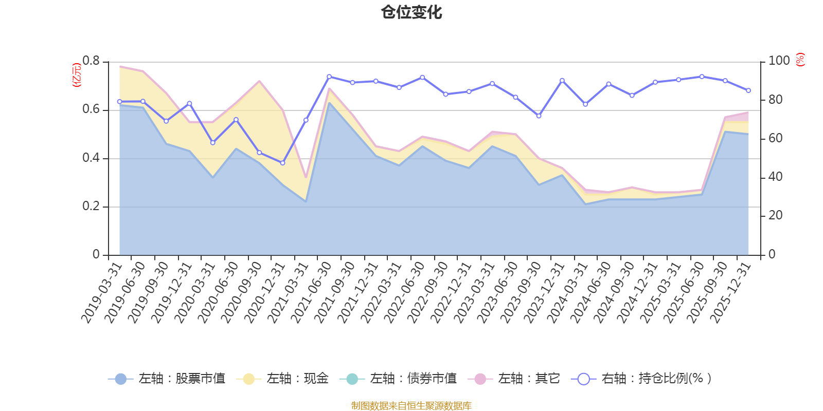 据定期报告数据统计,近三年平均股票仓位为85.76%,同类平均为72.57%。2025年上半年末基金达到92.28%的最高仓位,2020年末最低,为47.63%。