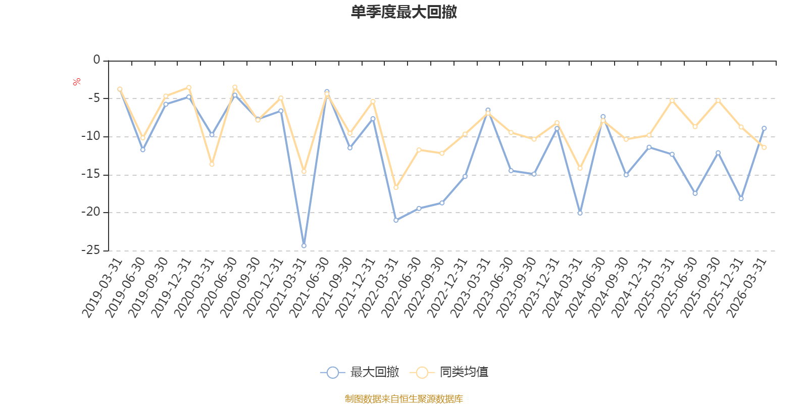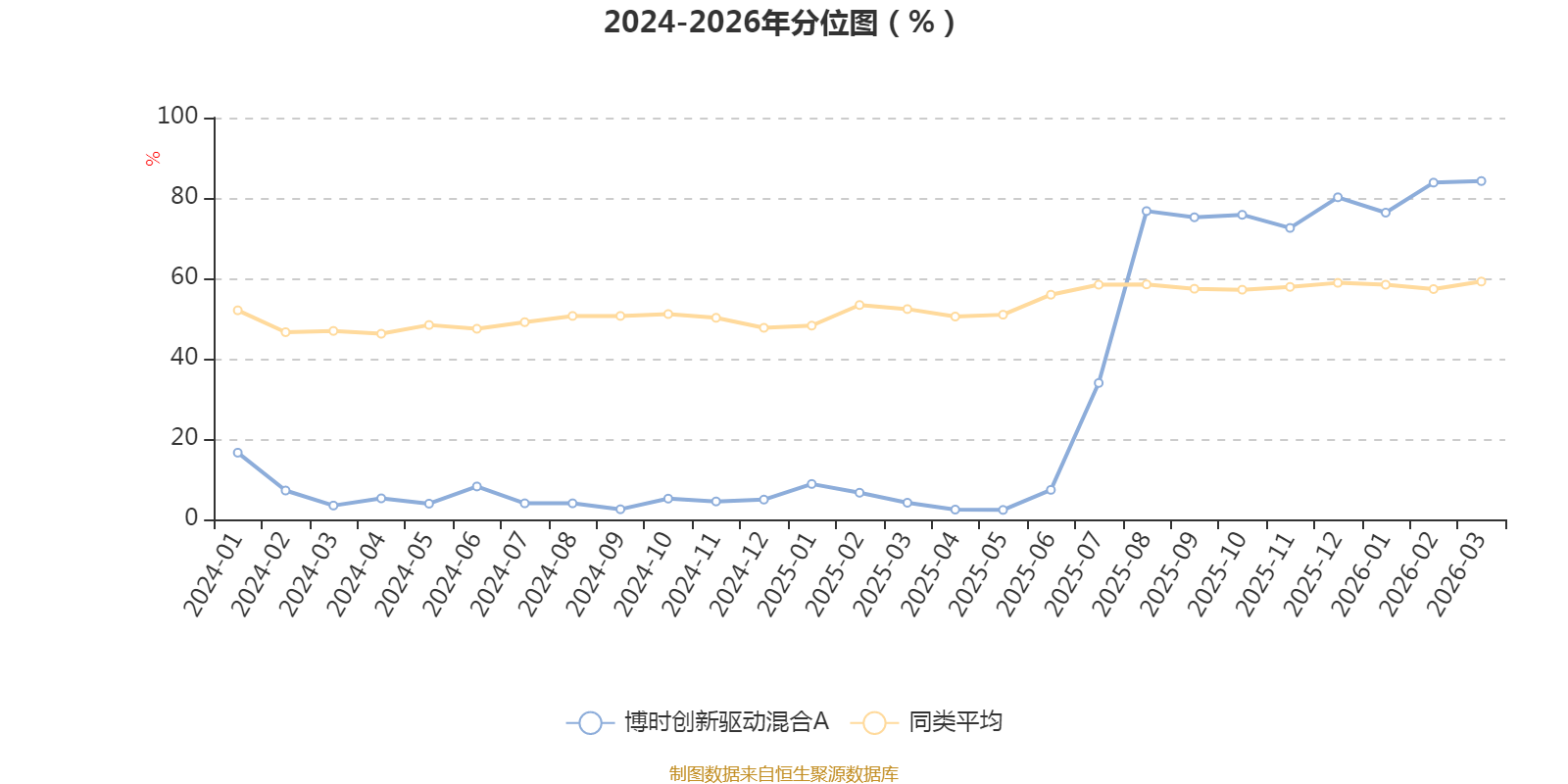 通过所选区间该基金净值增长率分位图,可以观察该基金与同类基金业绩比较情况。图为坐标原点到区间内某时点的净值增长率在同类基金中的分位数。