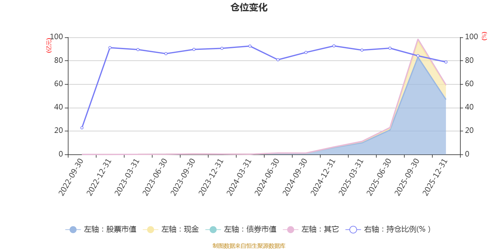 据定期报告数据统计,近三年平均股票仓位为87.7%,同类平均为86.9%。2024年末基金达到92.69%的最高仓位,2022年三季度末最低,为22.81%。