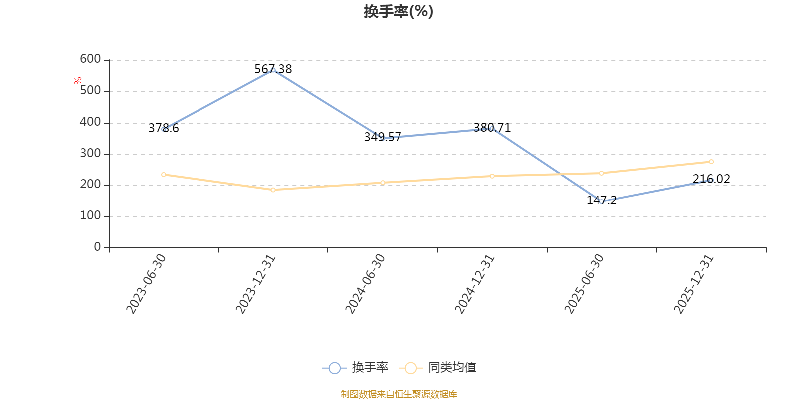截至2025年12月31日,基金最近一年换手率约379.81%,持续1年低于同类均值。