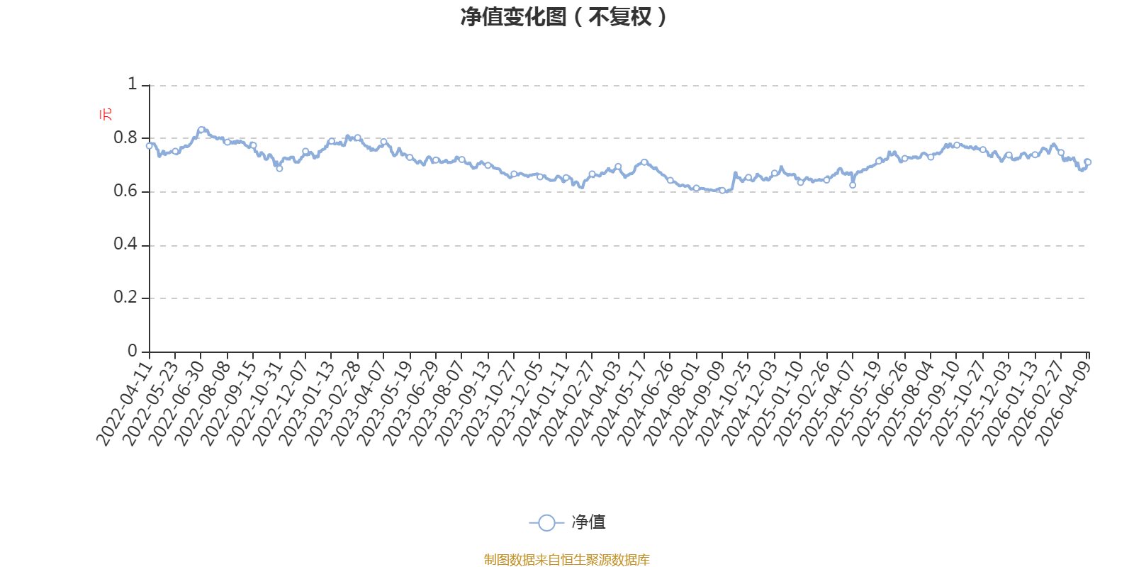 该基金属于股债平衡型基金。截至4月9日,单位净值为0.711元。基金经理是冀楠和黄超杰。