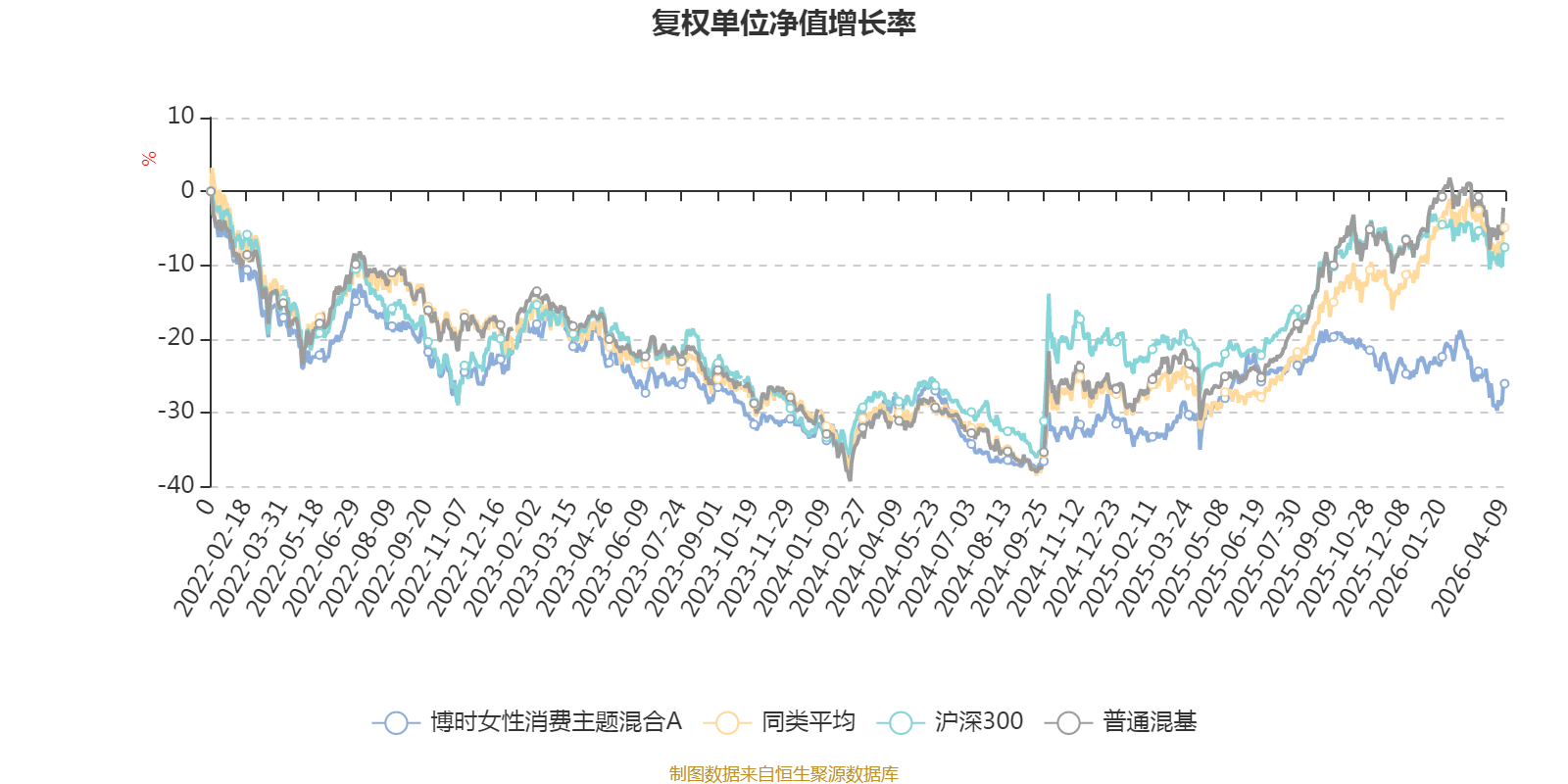 截至4月9日,博时女性消费主题混合A近三个月复权单位净值增长率为-3.87%,位于同类可比基金107/134;近半年复权单位净值增长率为-7.19%,位于同类可比基金117/134;近一年复权单位净值增长率为8.37%,位于同类可比基金111/134;近三年复权单位净值增长率为-9.69%,位于同类可比基金115/126。
