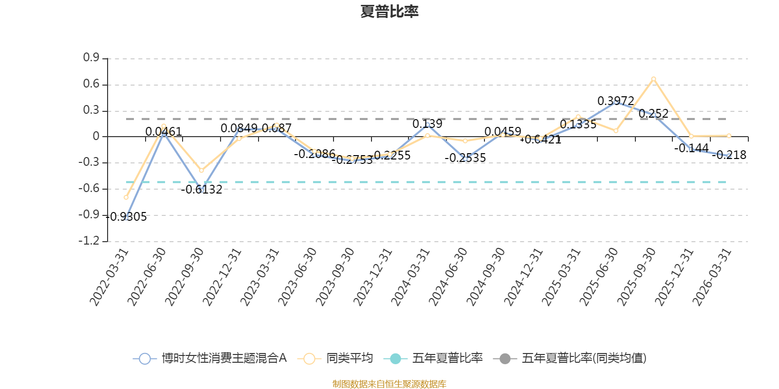 截至3月31日,基金近三年夏普比率为-0.1196,位于同类可比基金117/124。