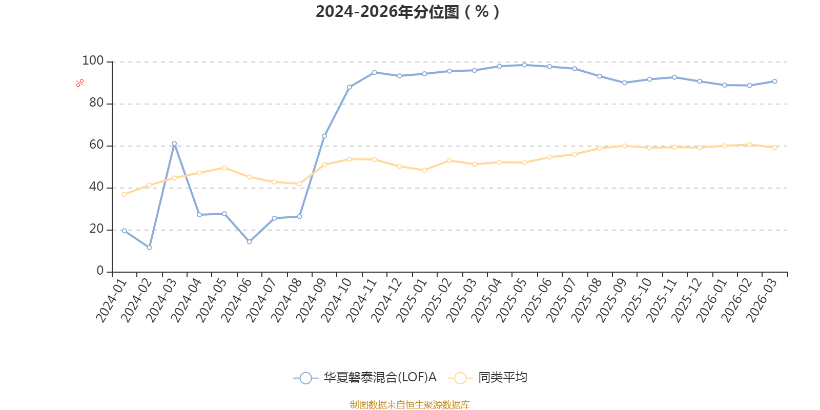 通过所选区间该基金净值增长率分位图,可以观察该基金与同类基金业绩比较情况。图为坐标原点到区间内某时点的净值增长率在同类基金中的分位数。