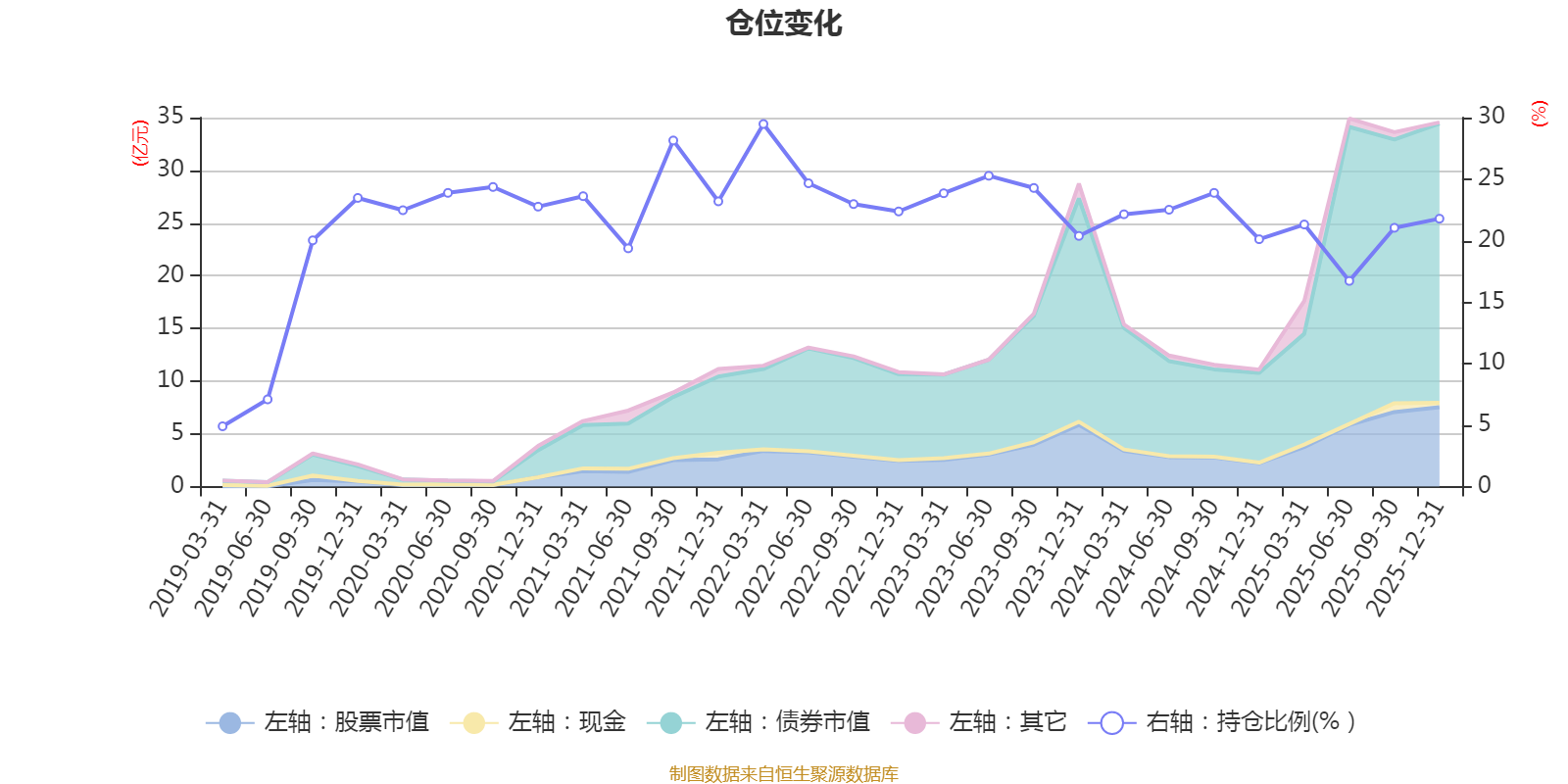 据定期报告数据统计,近三年平均股票仓位为21.94%,同类平均为19.2%。2022年一季度末基金达到29.48%的最高仓位,2019年一季度末最低,为4.9%。
