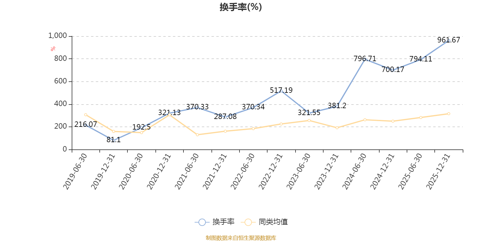截至2025年12月31日,基金最近一年换手率约1721.22%,持续6年高于同类均值。