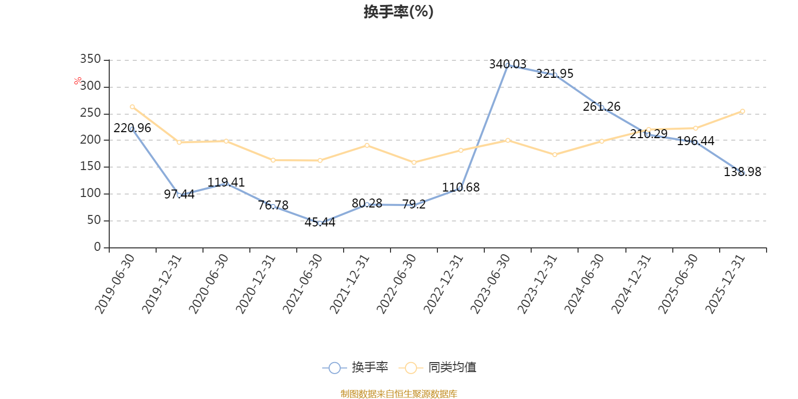 截至2025年12月31日,基金最近一年换手率约327.39%,持续1年低于同类均值。