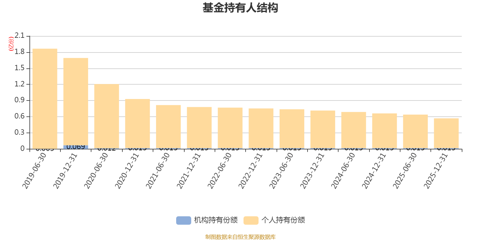 截至2025年12月31日,基金持有人共计2.17万户,合计持有5688.58万份。其中管理人员工持有124.74份,机构持有份额占比2.58%,个人投资者占比97.42%。
