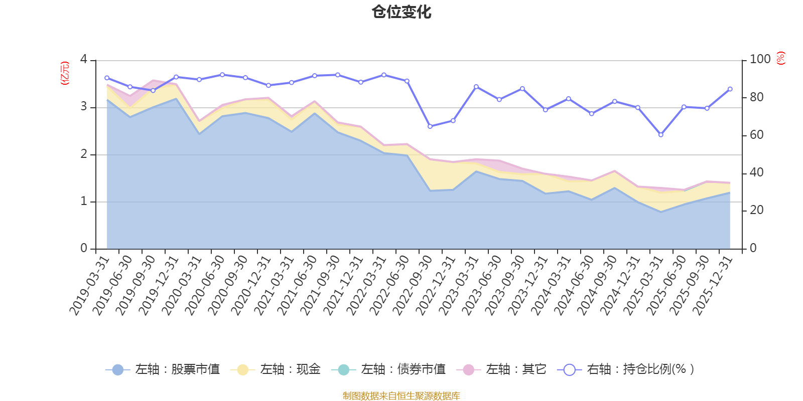 据定期报告数据统计,近三年平均股票仓位为76.9%,同类平均为85.83%。2020年上半年末基金达到92.28%的最高仓位,2025年一季度末最低,为60.47%。