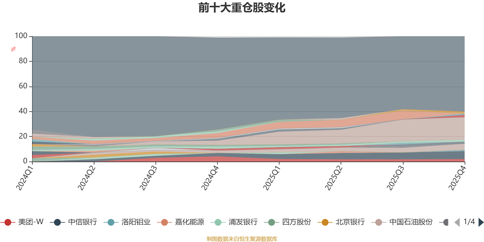截至2025年末,基金十大重仓股分别是腾讯控股、中信银行、中国石油股份、美团-W、美的集团、中国石油化工股份、紫金矿业、宁德时代、贵州茅台、洛阳钼业、中国石化。