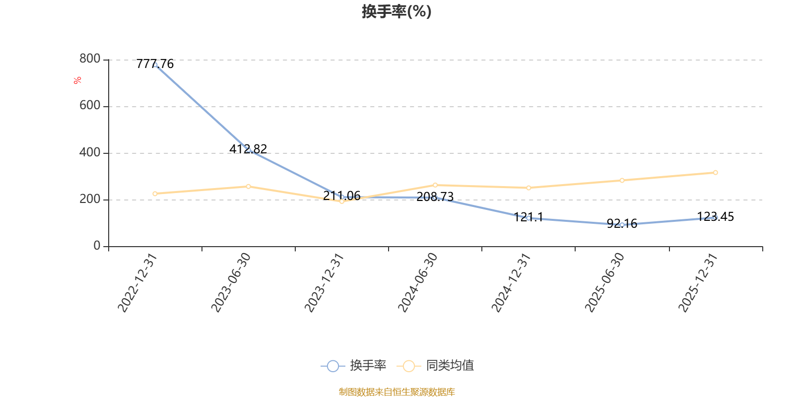 截至2025年12月31日,基金最近一年换手率约210.78%,持续2年低于同类均值。
