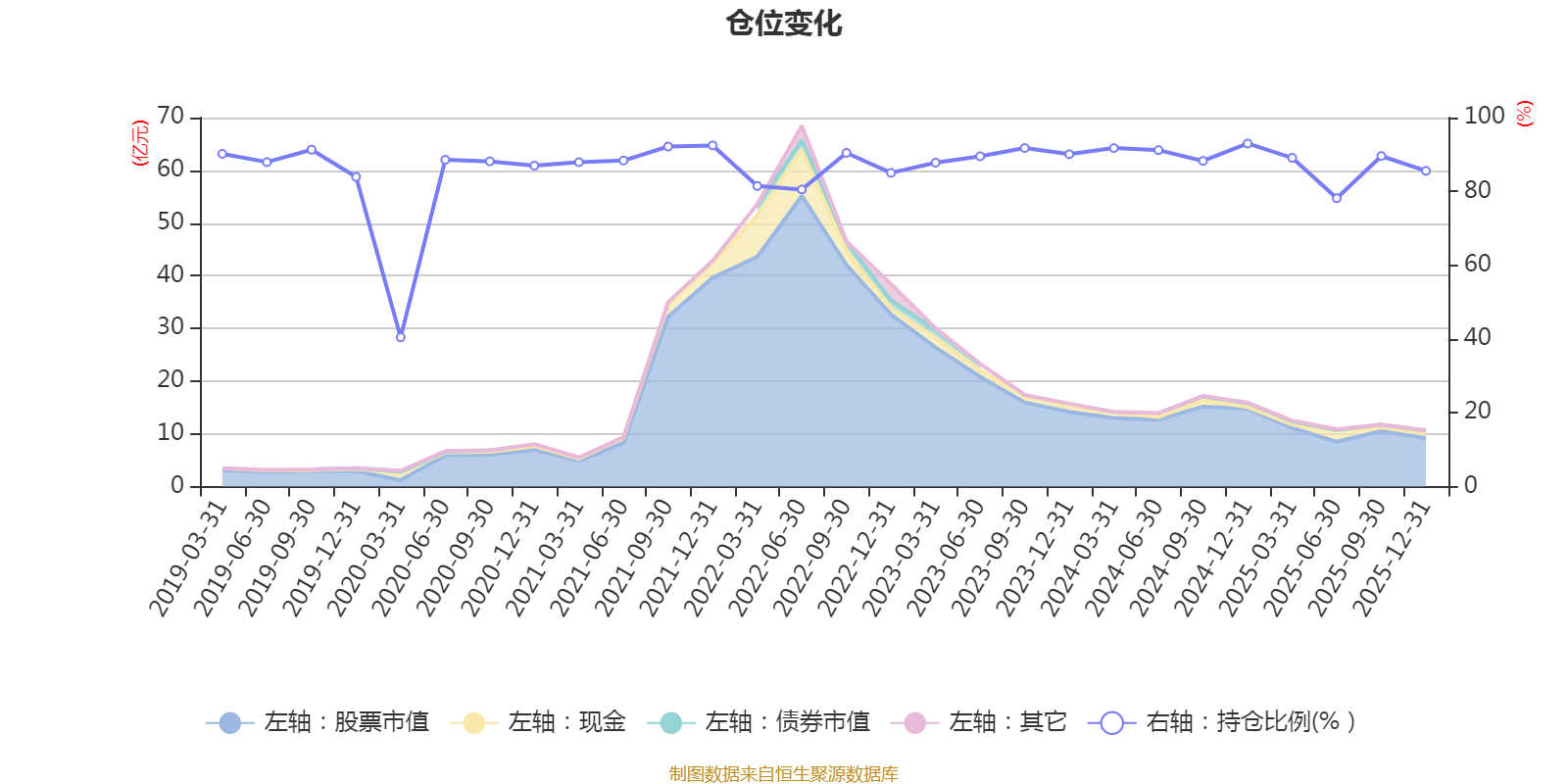 据定期报告数据统计,近三年平均股票仓位为88.81%,同类平均为72.57%。2024年末基金达到92.97%的最高仓位,2020年一季度末最低,为40.45%。