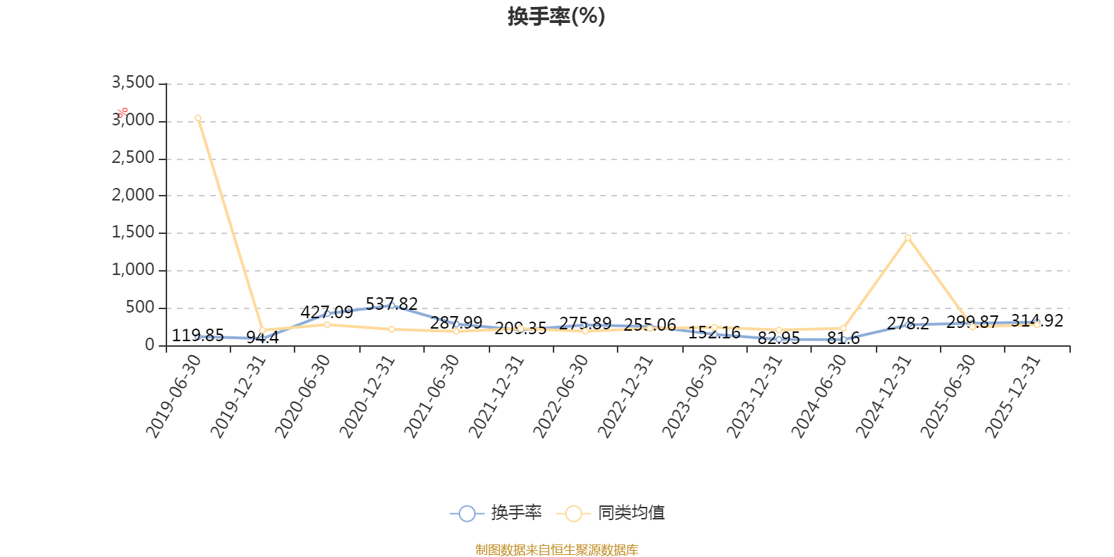 截至2025年12月31日,基金最近一年换手率约591.35%,持续1年高于同类均值。