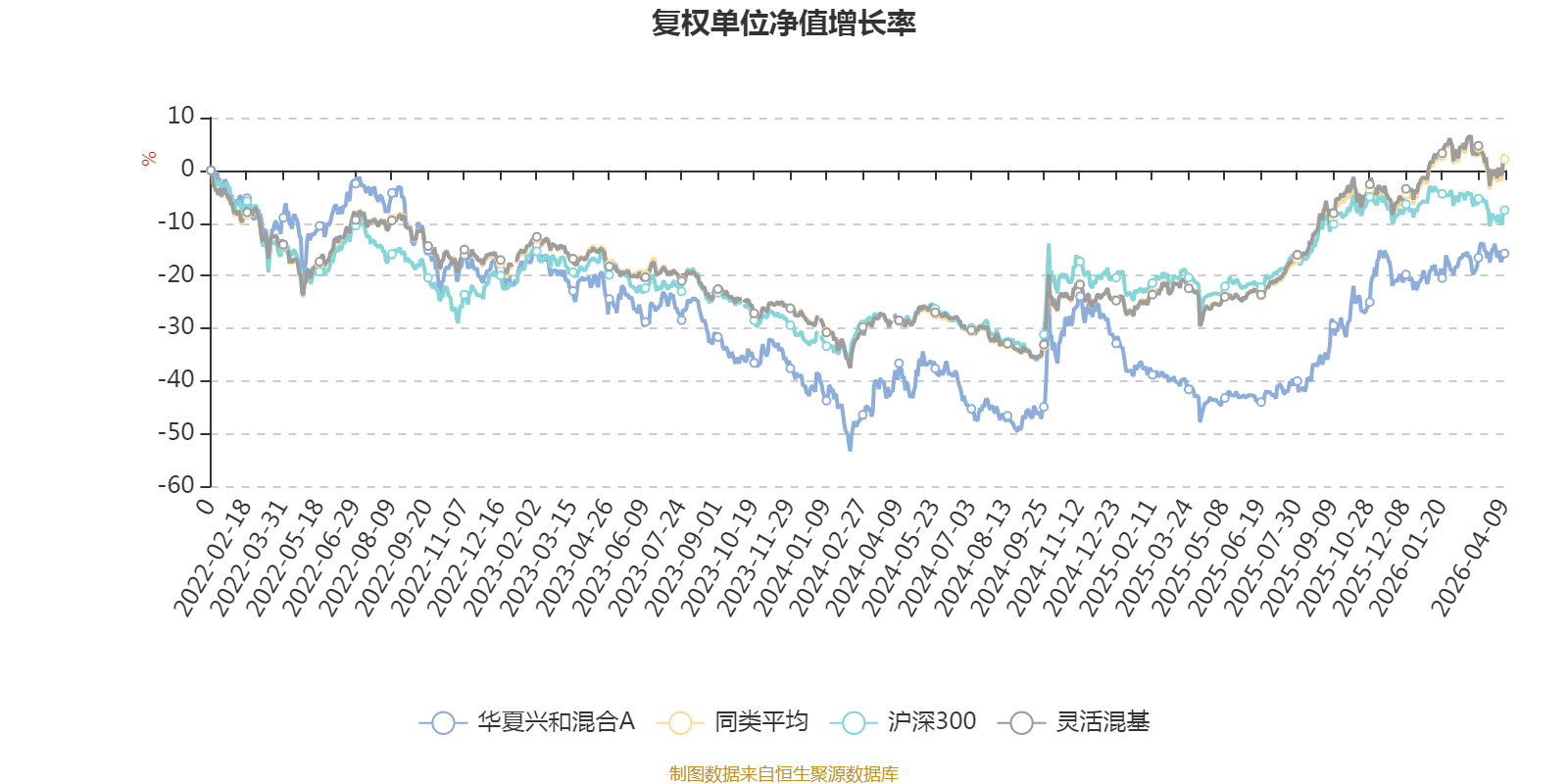 截至4月9日,华夏兴和混合A近三个月复权单位净值增长率为3.82%,位于同类可比基金236/1287;近半年复权单位净值增长率为7.86%,位于同类可比基金300/1286;近一年复权单位净值增长率为55.48%,位于同类可比基金303/1286;近三年复权单位净值增长率为6.98%,位于同类可比基金800/1286。