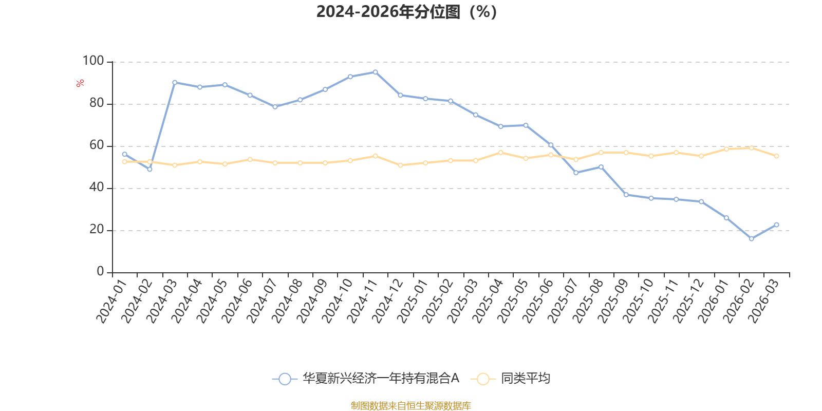 通过所选区间该基金净值增长率分位图,可以观察该基金与同类基金业绩比较情况。图为坐标原点到区间内某时点的净值增长率在同类基金中的分位数。