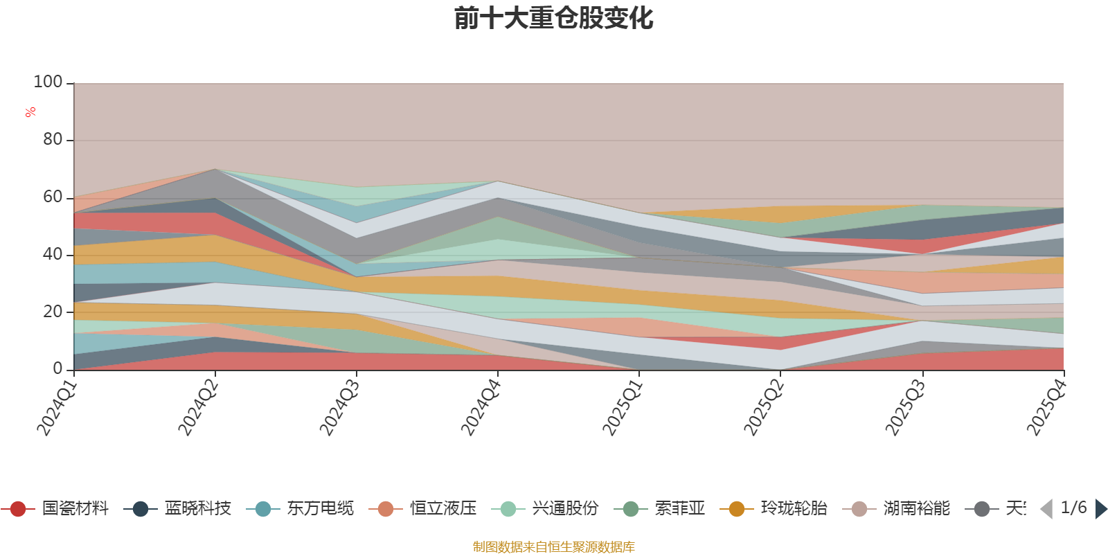 该基金持股集中度较高。截至2025年末,基金十大重仓股分别是国瓷材料、麦格米特、中国巨石、菲利华、兴发集团、华鲁恒升、燕京啤酒、柳工、思源电气、申通快递。