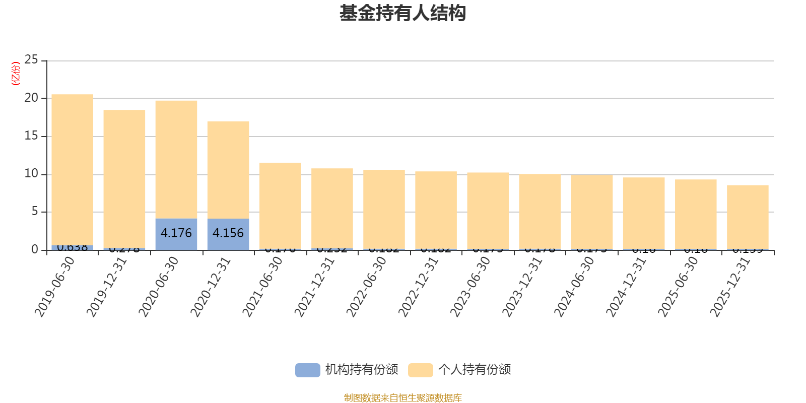 截至2025年12月31日,基金持有人共计3.84万户,合计持有8.56亿份。其中管理人员工持有9.58万份,占比0.01%,机构持有份额占比1.85%,个人投资者占比98.15%。