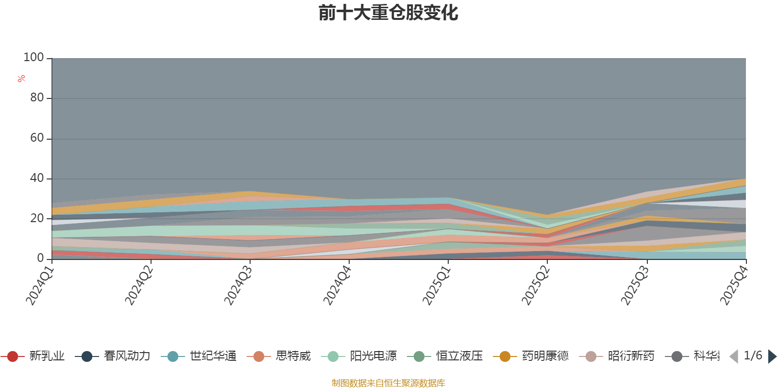 截至2025年末,基金十大重仓股分别是思源电气、仕佳光子、开特股份、昭衍新药、英科医疗、紫金矿业、纽威股份、世纪华通、恒立液压、阳光电源。