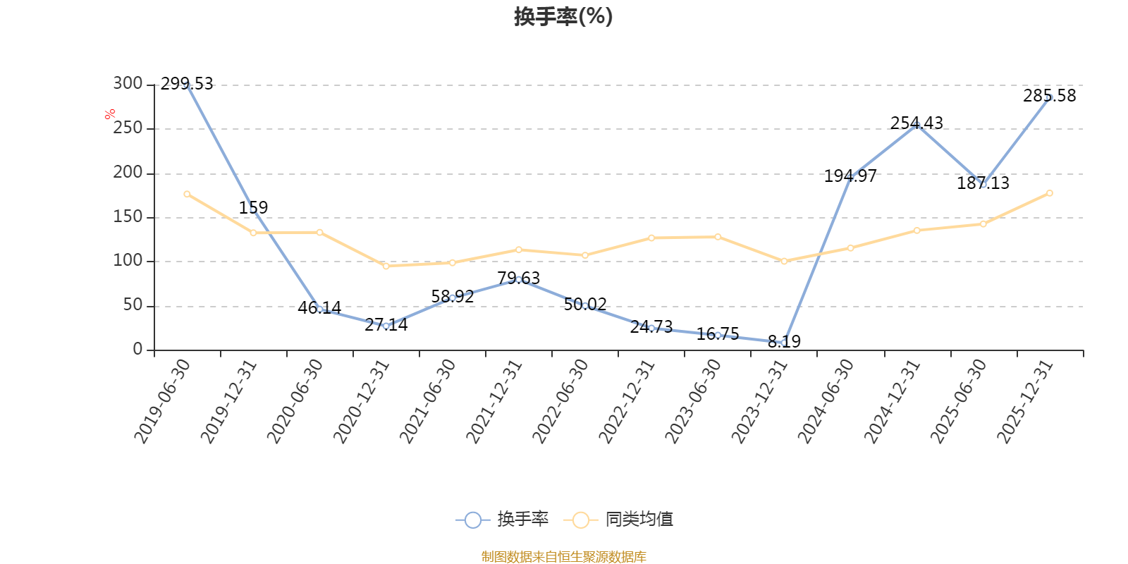截至2025年12月31日,基金最近一年换手率约475.96%,持续2年高于同类均值。
