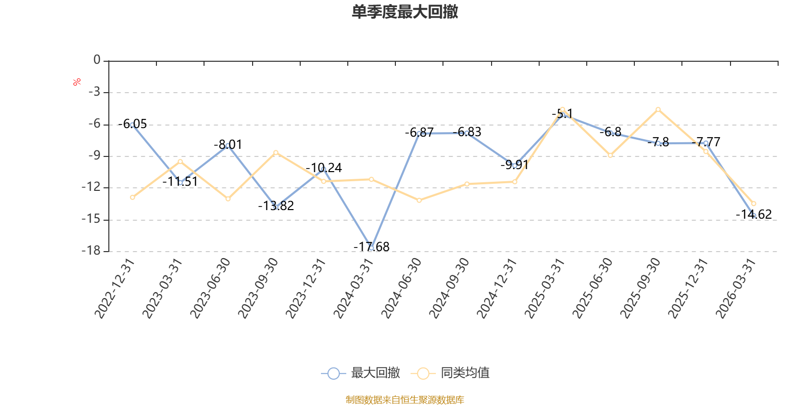 截至4月9日,基金近三年最大回撤为32.98%,同类可比基金排名35/75。单季度最大回撤出现在2024年一季度,为17.68%。